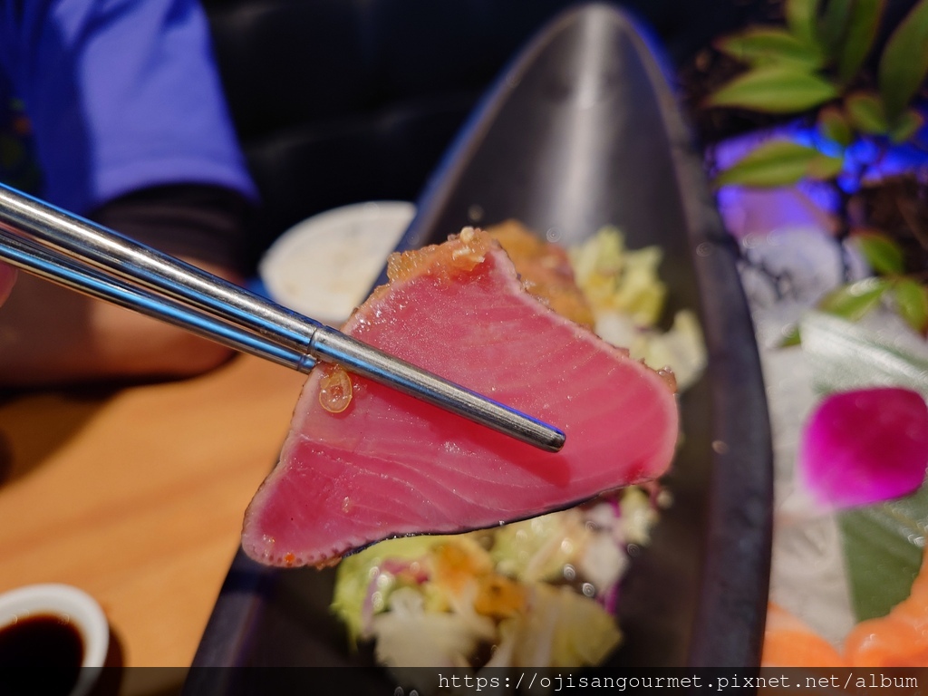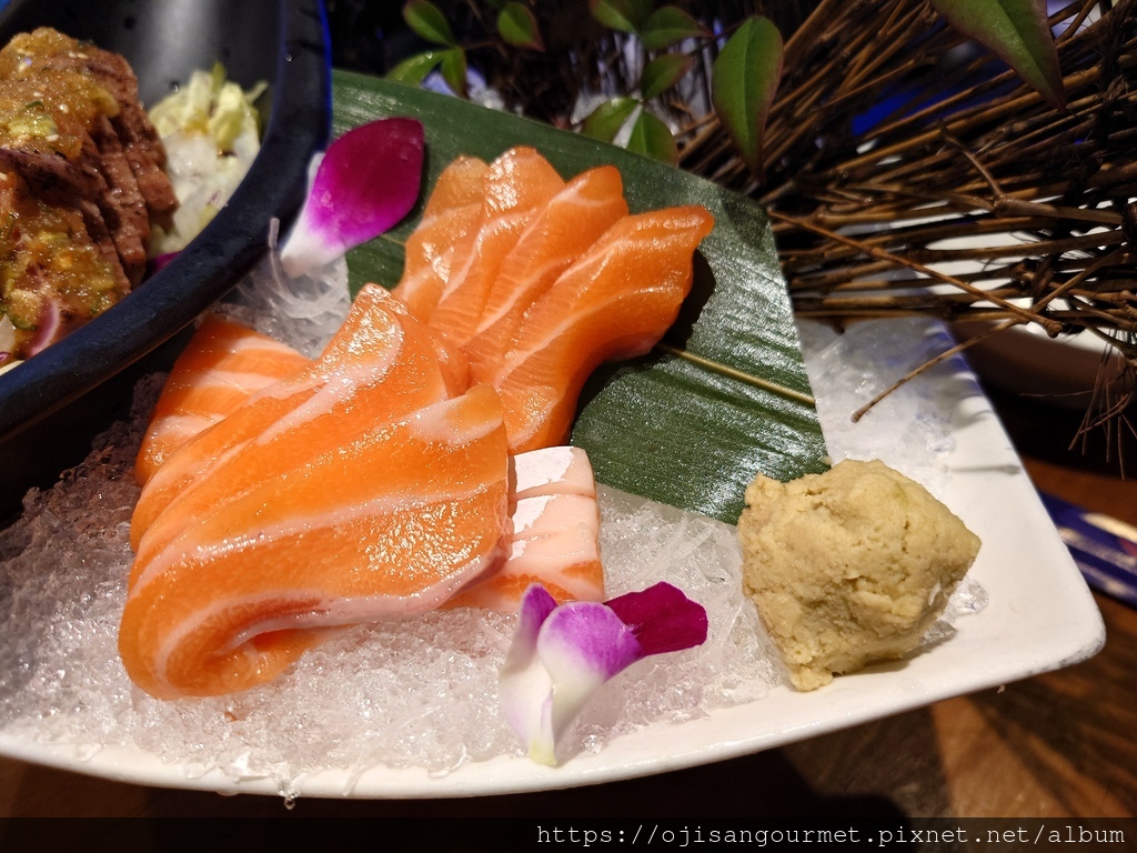 近日的鰹魚肥美,體型有如砲彈,「燒霜鰹魚」櫻花粉紅的切口顏色昭告它正處於最美味的時節,不必山葵和醬油,以油醋、蔥花和洋蔥泥混合的特調醬料就是最好的搭檔。綴有美麗銀皮的「鮭魚大腹」是“ 阿嗚 ”學長的最愛,肥腴軟滑,一咀嚼鮭魚的油脂風味充滿口腔。值得一提的是,這裡的山葵醬品質非常好,入口香氣顯著,適當的辣度化解油膩,提供清新感,大概是因為雲林和山葵產地嘉義比鄰吧!