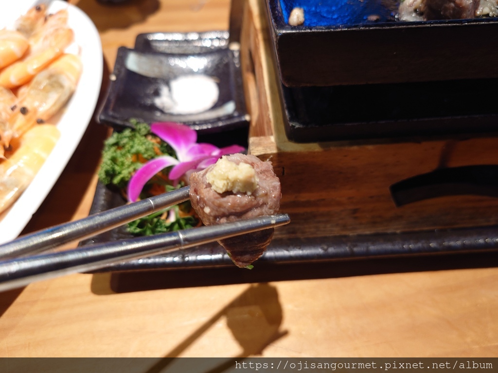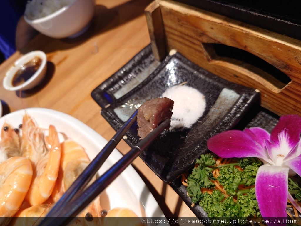 在海鮮餐廳吃「鐵板安格斯黑牛」似乎有點詭異,“ 阿嗚 ”學長推薦,既來之則吃之。只在外圍煎烤一圈的兩分熟,切成骰子狀,放在炙熱的鐵板上出餐,稍事翻轉,等到紅色的切口轉白見微焦,外層焦香,裡面肉汁滿滿。除了旁邊附上的天然海鹽,沾上剛剛生魚片沒用完的山葵醬又是另一種風味。記得雲林是本土肉牛養殖重鎮之一,期待有朝一日可以在這裡吃到在地牛肉。