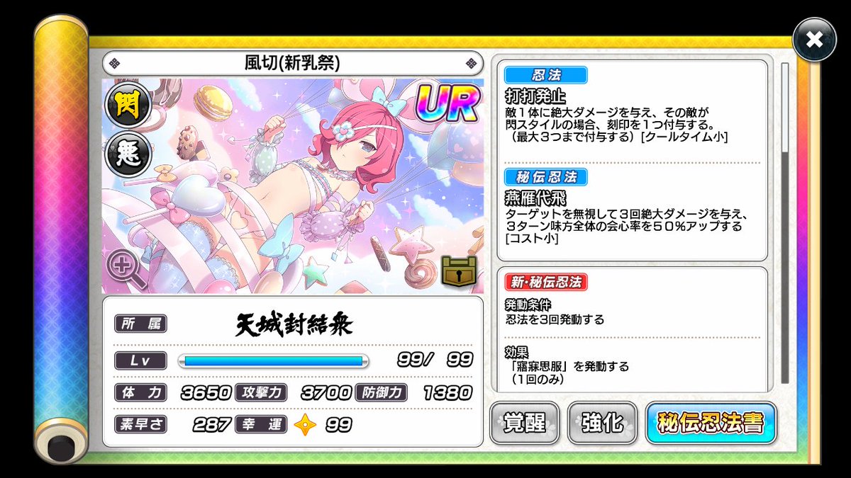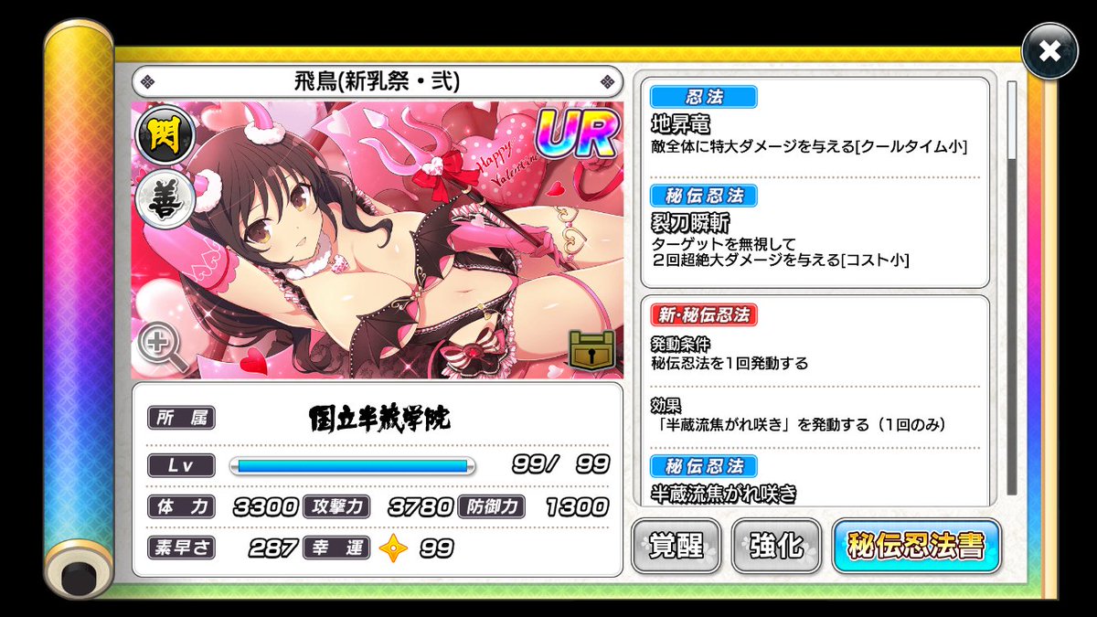 本次PU的情人節新卡片為 UR 兩奈(新乳祭・貳) 両奈(新乳祭・弐) 以及 UR 風切(新乳祭)〈此為覺醒後的稀有度以及衣裝〉。