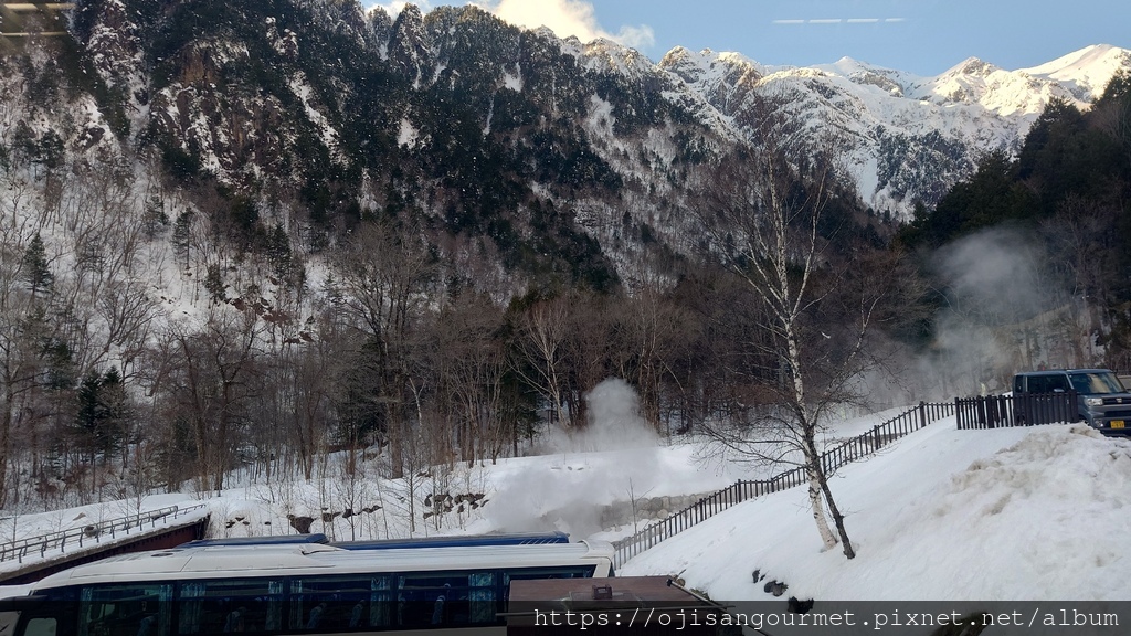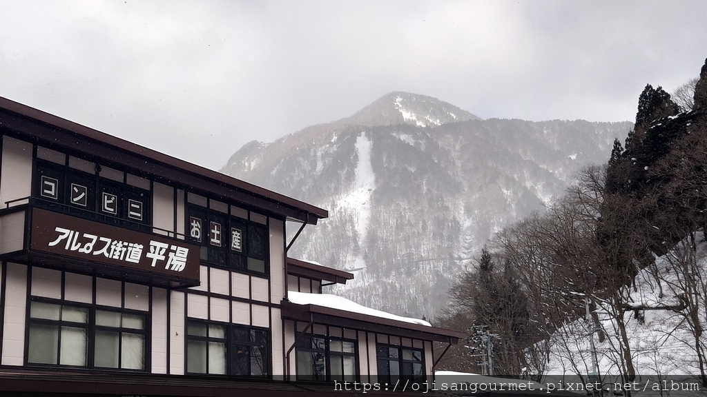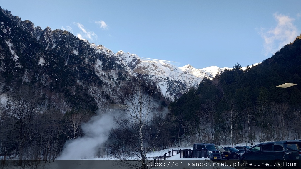 上午 11:45 遊覽車抵達預定的午餐地點--位於覆雪群山間的【アルプス街道平湯】。即使是專業駕駛,光從蛭野高原休息站到這裡就要 1 小時又 20 分,很難想像如果是我們自駕,整趟行程到底要花多少時間。