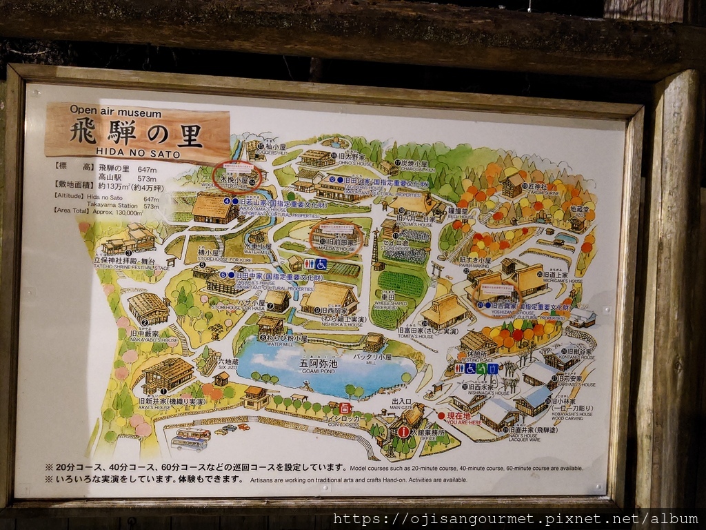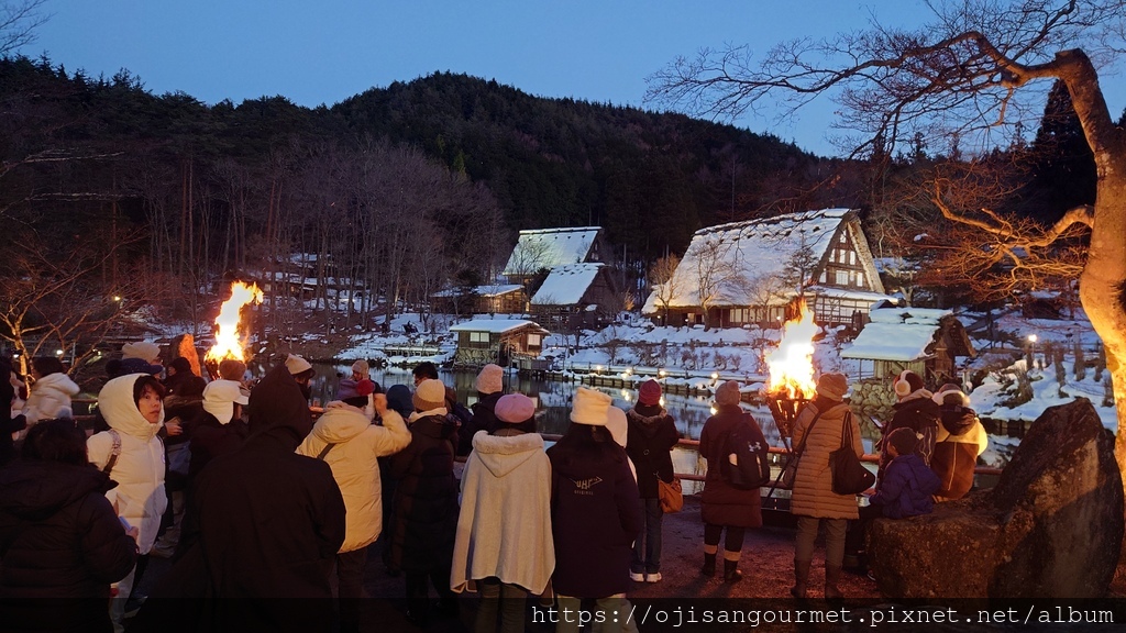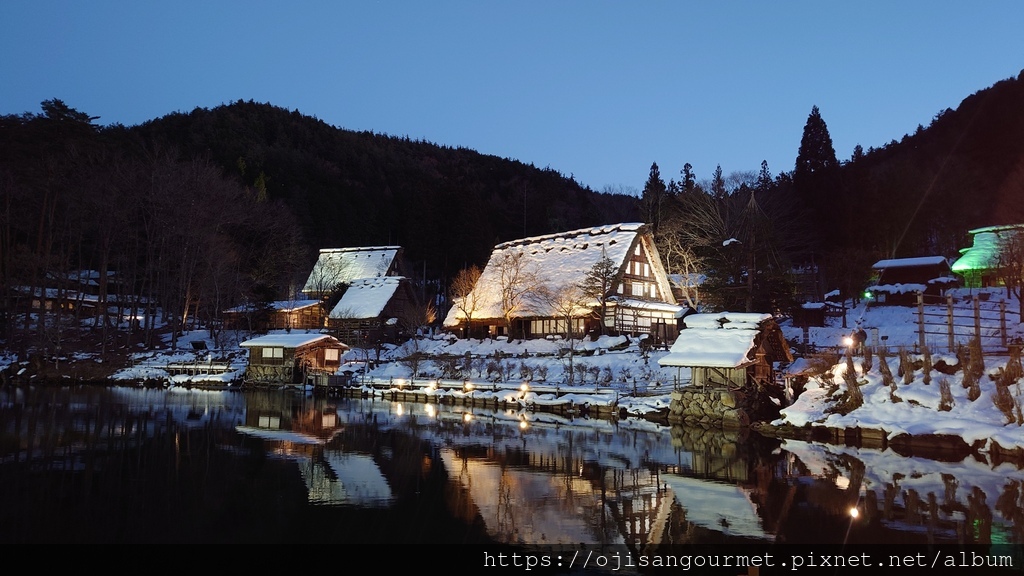 被聯合國世界教科文組織(UNESCO)列為世界遺產的是"白川鄉" 和"五箇山"的合掌聚落,目前合計約有 1500 居民。前者因為進行遊客總量管制,目前一年僅剩 4 次點燈日,即使透過旅行社依然一位難求。我們出發的 2025 年 1 月 26 日雖然剛好是其中一天,因為沒有買到行程,只能退而求其次到岐阜縣高山市的【飛驒之里】參觀點燈,這裡是保存了 30 棟建物(其中 4 棟為"國家指定重要文化物")的小型合掌屋聚落,可以視為露天博物館,目前並沒有居民。