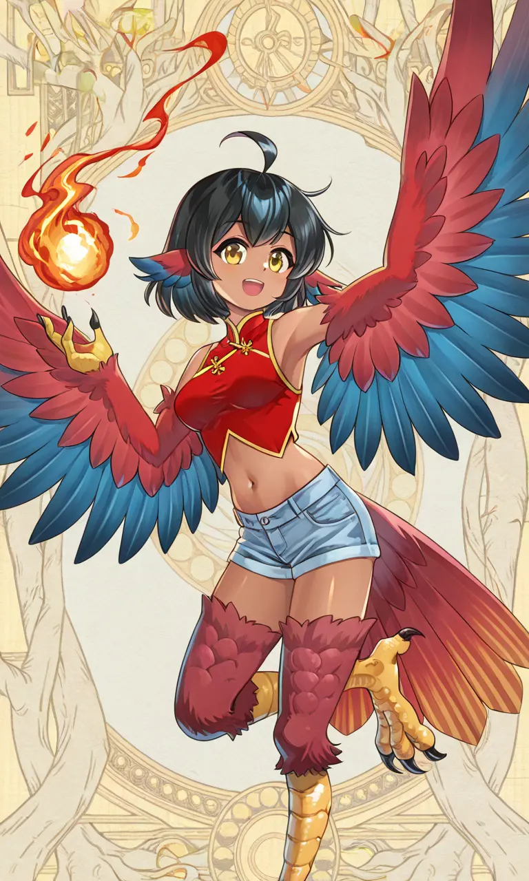 珊瑚的服裝較為曝露,除了上半身的上衣以外,就剩下下半身一件有些短的牛仔短褲。珊瑚的肚臍眼往下佈滿了羽毛,跟翅膀一樣,配色一紅和黃色為住,天藍色為輔。大腿一半往下的皮膚則是鳥爪這種土黃色且佈滿疙瘩的樣子,想當然而珊瑚的腳就是類似老鷹的趾爪,相當鋒利。簡單來說珊瑚的下半身跟鳥一樣。順帶一提,珊瑚的左腳踝幫著一個紅色的蝴蝶結,據說是因為覺得可愛才綁的。