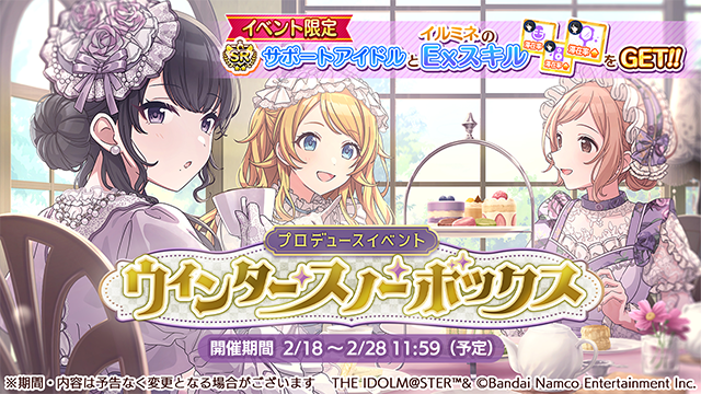 此外,自 2 月 18 日~2 月 28 日舉行培育活動「ウィンター・スノー・ボックス」,完成活動任務即可獲得 SR 支援偶像【優雅に願いをかけて】風野灯織。