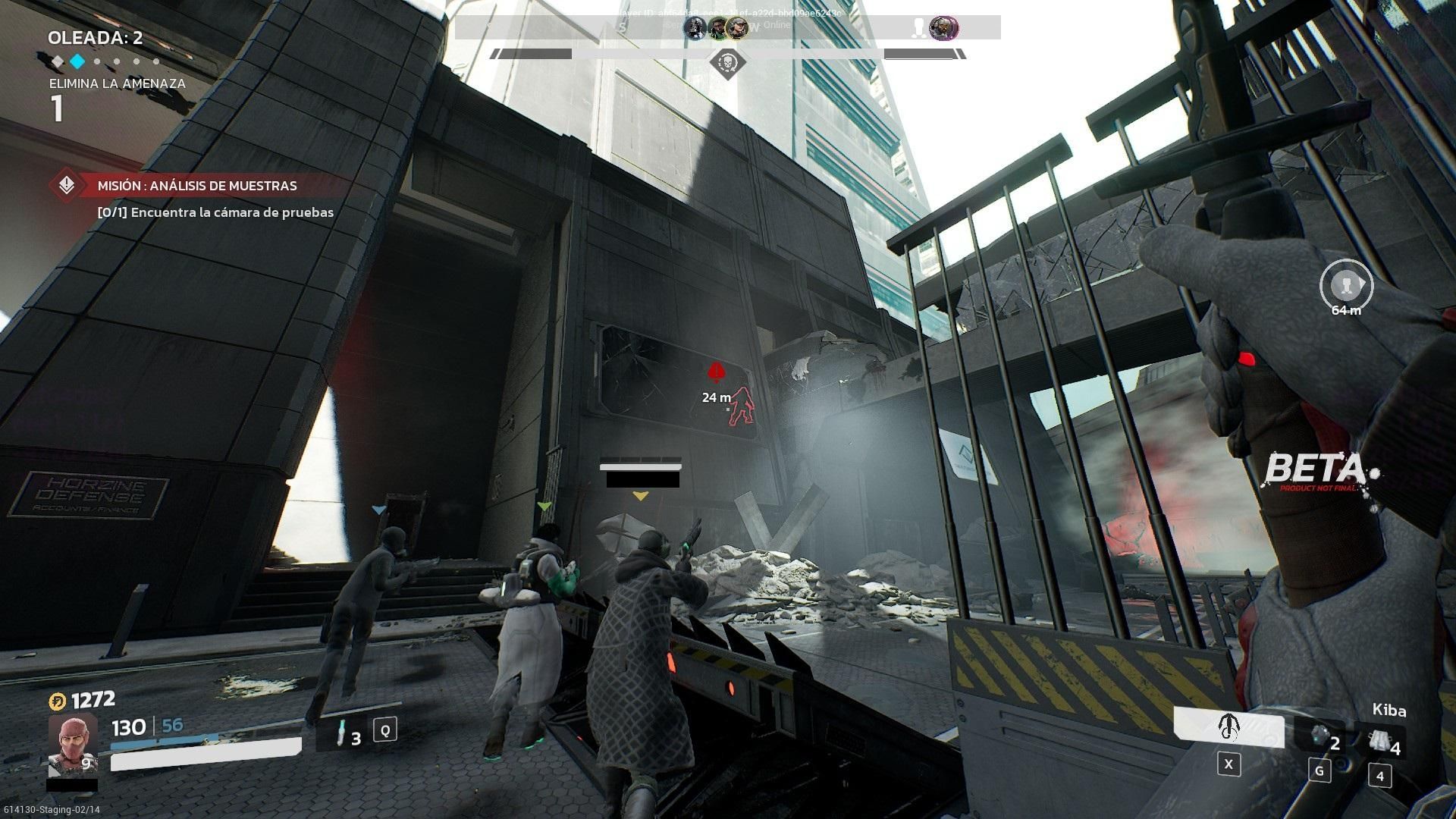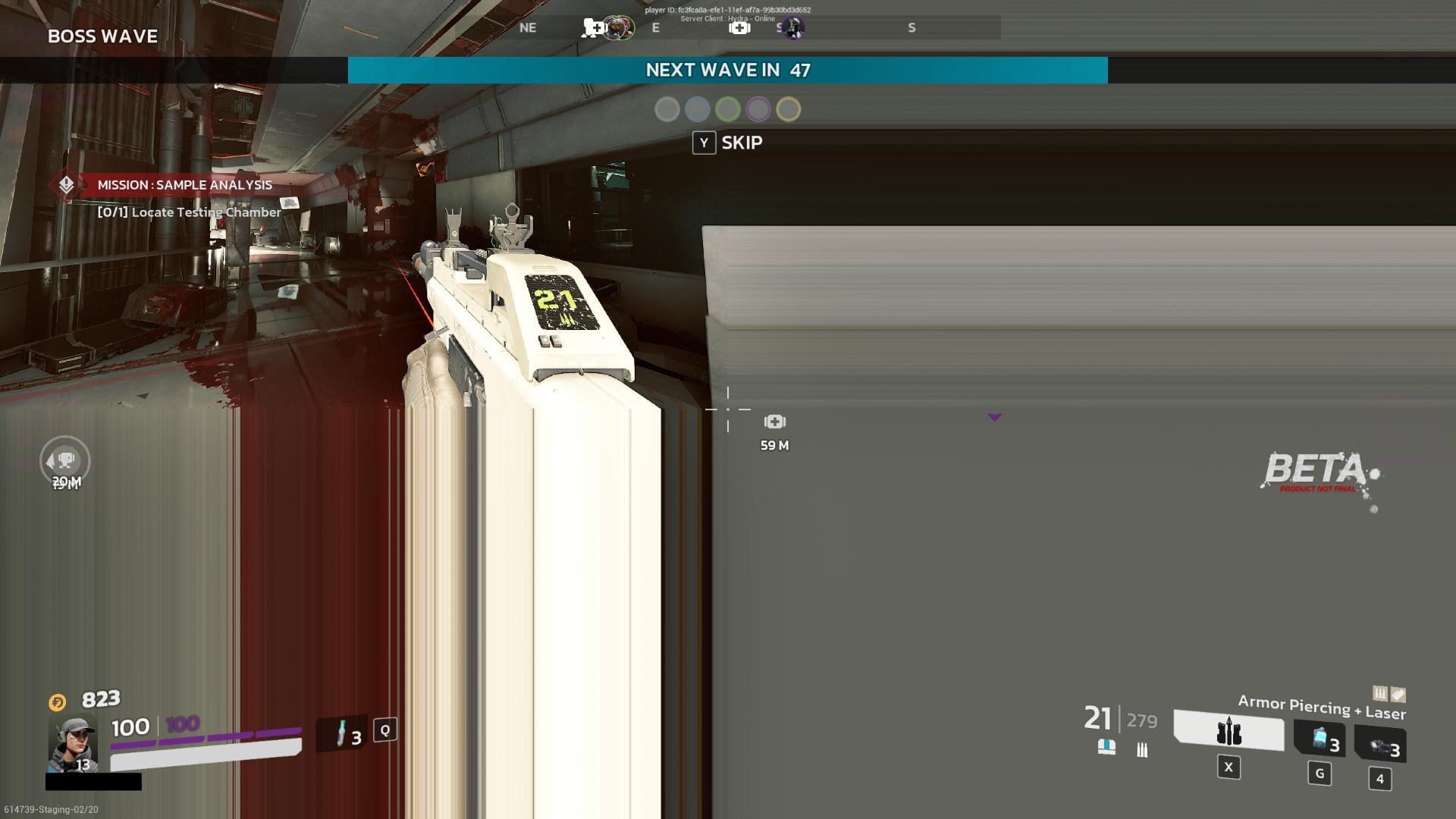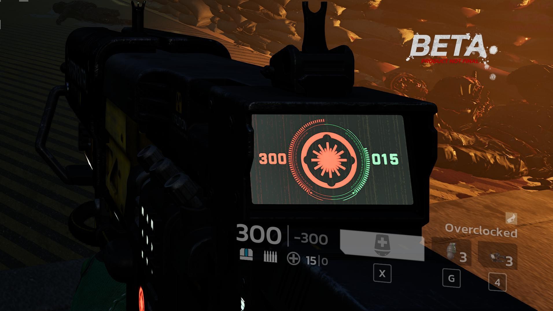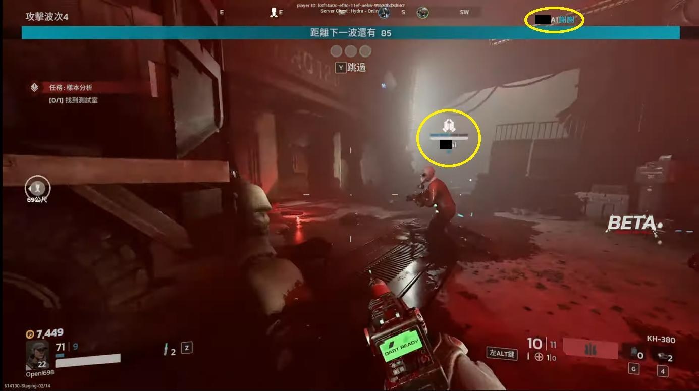 流程沒有太大的改變,敵人一樣是波次來襲,結束後進入商店時間,不過 KF3 目前是固定 5 波 + 1 個頭目波,商店時間也延長至 90 秒。攻擊波次顯示在左上角代表示下一波是第幾波。除了頭目波跟第一波之外,其他波次似乎都有機會發生變異:(請無視那醜不拉機的準星)