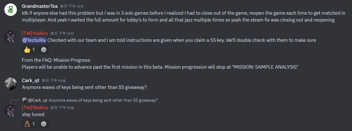 還有很多問題我來不及截圖跟記錄,所以我決定從官方 Discord 的 bug 回報區挖幾個精采的截圖(因為不是我個人的截圖,ID會全部遮擋)。