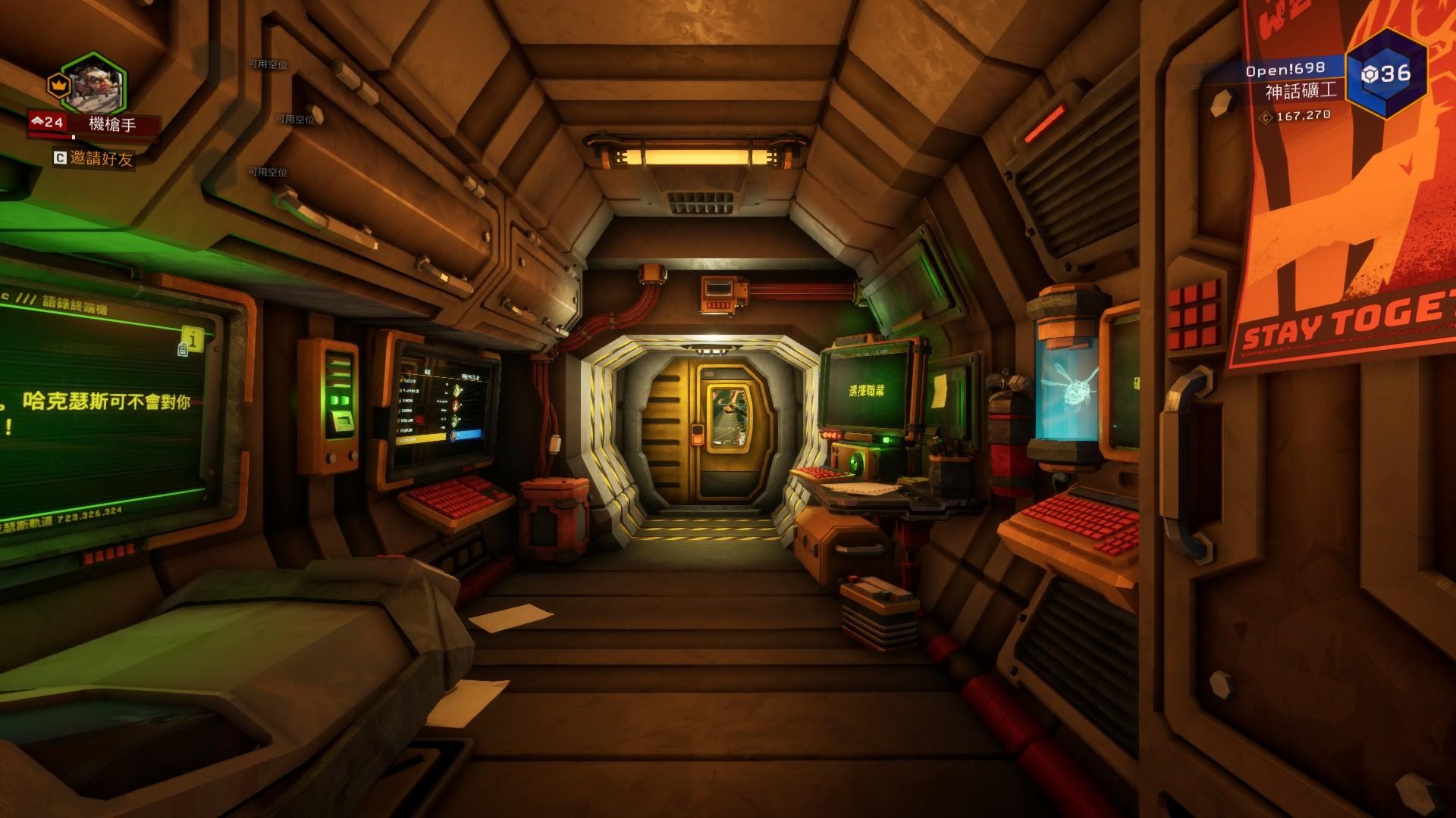 首先玩家會重生在「個人的房間」,走出房間之後多繞一下會發現這樣的個人房間有 6 間,正好對應這遊戲目前最多同時遊玩的人數上限。