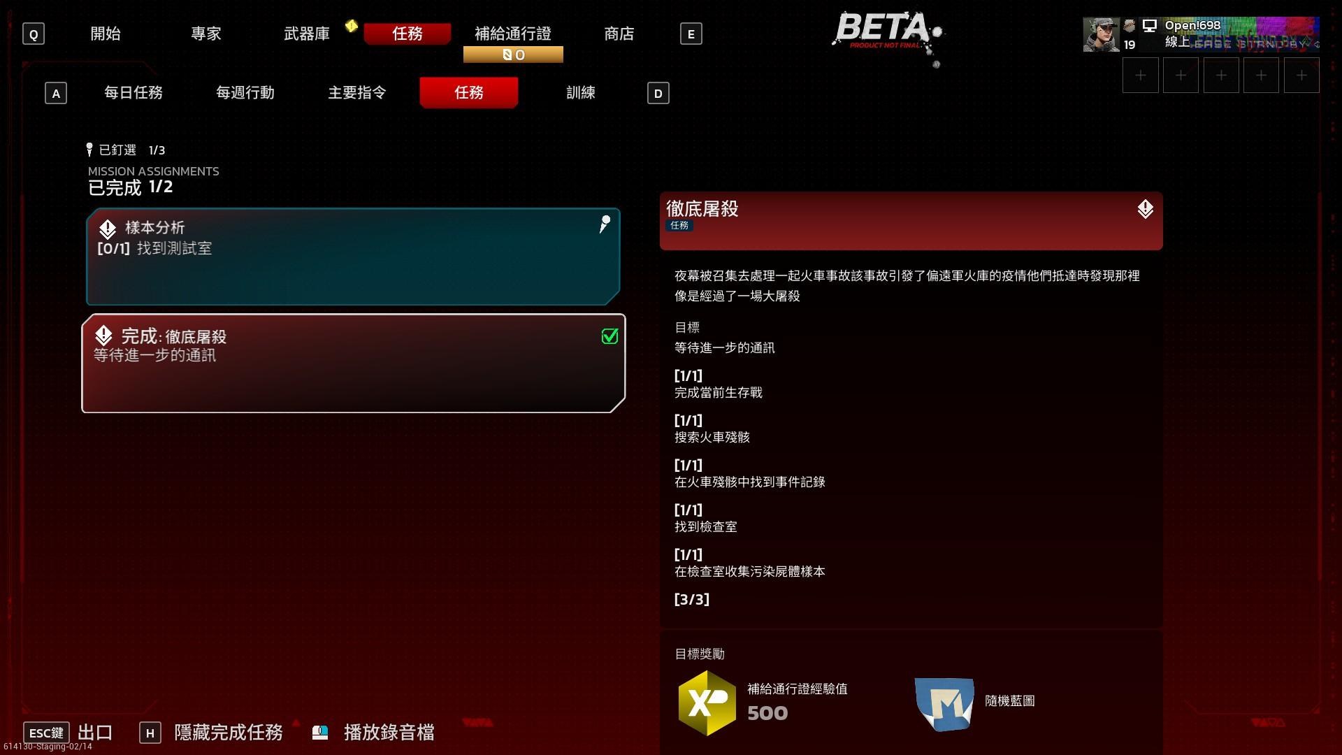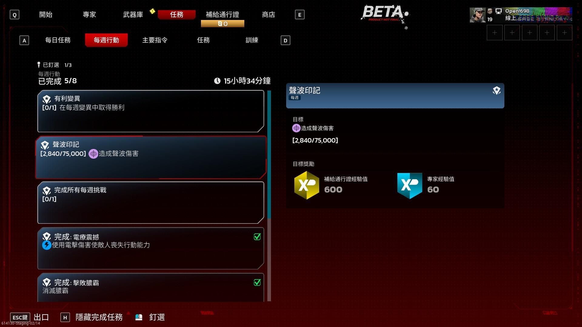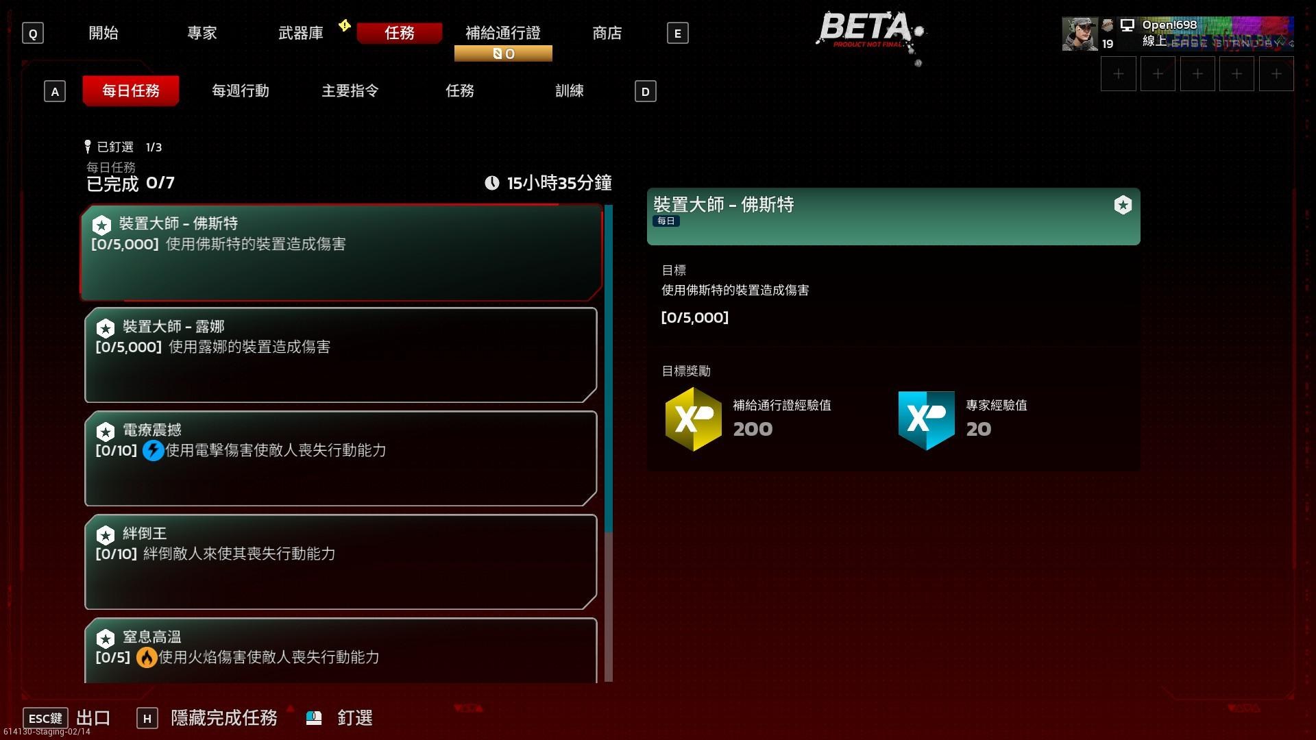 懶人包:「任務」不是新手教學,封測可以完全忽視。儘管任務做完會有通行證經驗,由於是測試階段,這些任務不做也無所謂。