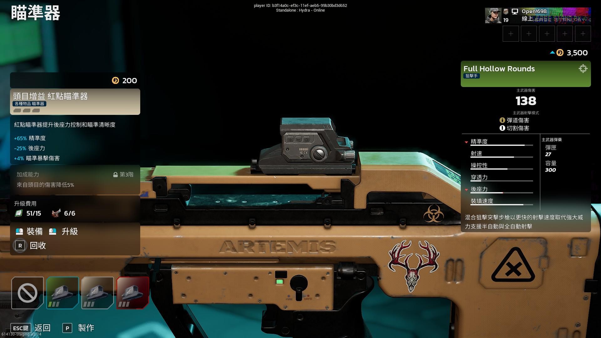 然而同一個組件會有滿級時詞條的問題,例如下方同為瞄準器在滿級時的屬性都不同。