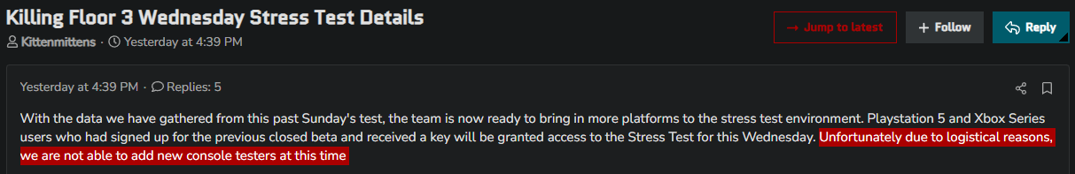 (來源:官方 Killing Floor 3 Discord,截圖時間為台灣的 2/21 晚上9點)