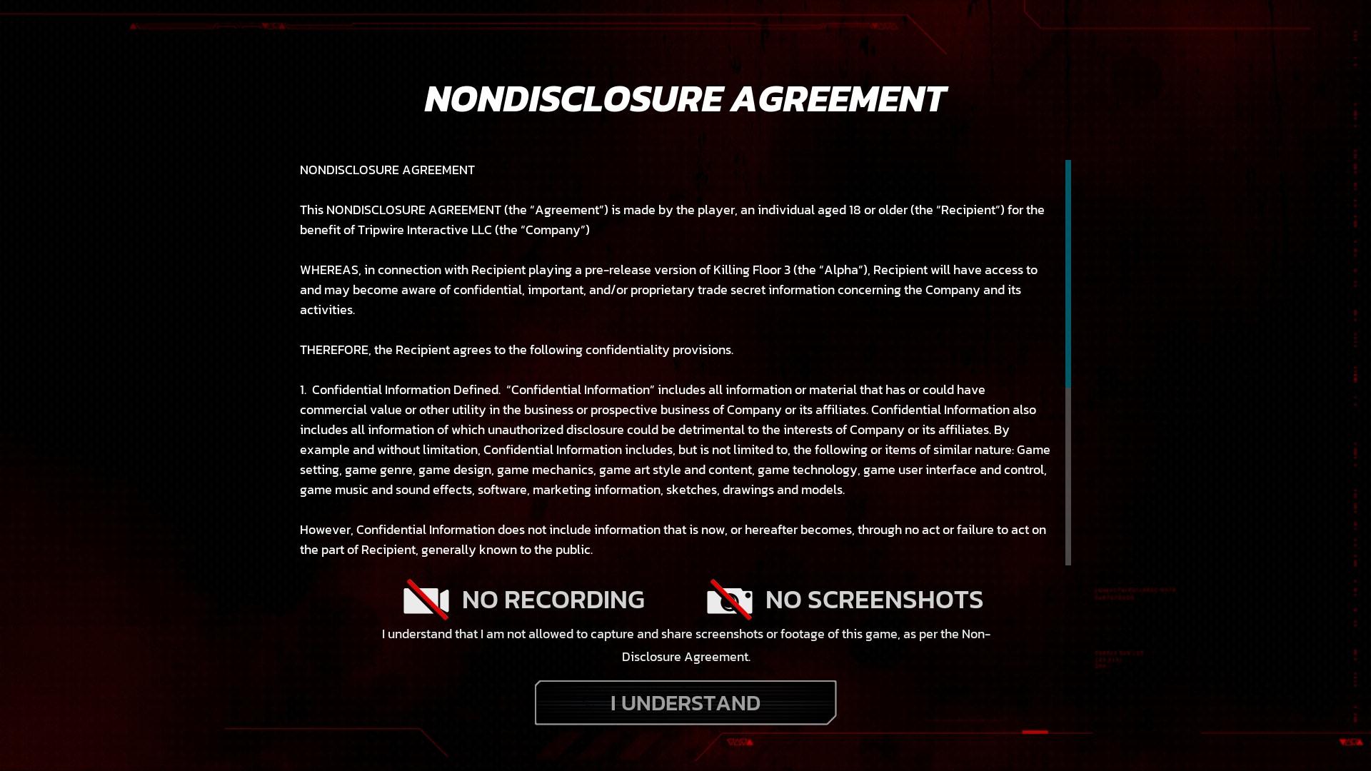第三段說明他們在第一測開始不到一小時就發覺這是不正確的作法,所以他們已經不再實行 NDA 內提到的處罰方式。這也是為何後來實況以及影片如雨後春筍般冒出,並不是玩家不怕死而是 Tripwire Interactive 縮回去了。而上面提到的那位不怕死的仁兄後來查詢也發現已經解封。