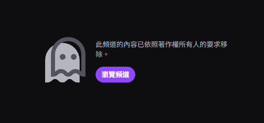 整段特別留意官方使用的是相當正式的說法:Cease and desist(立即停止),並非口語形式的 stop 叫你住手而已。當然這位勇者並未停止實況,後來實況直接開始轉圈,重新整理之後就看到這個畫面: