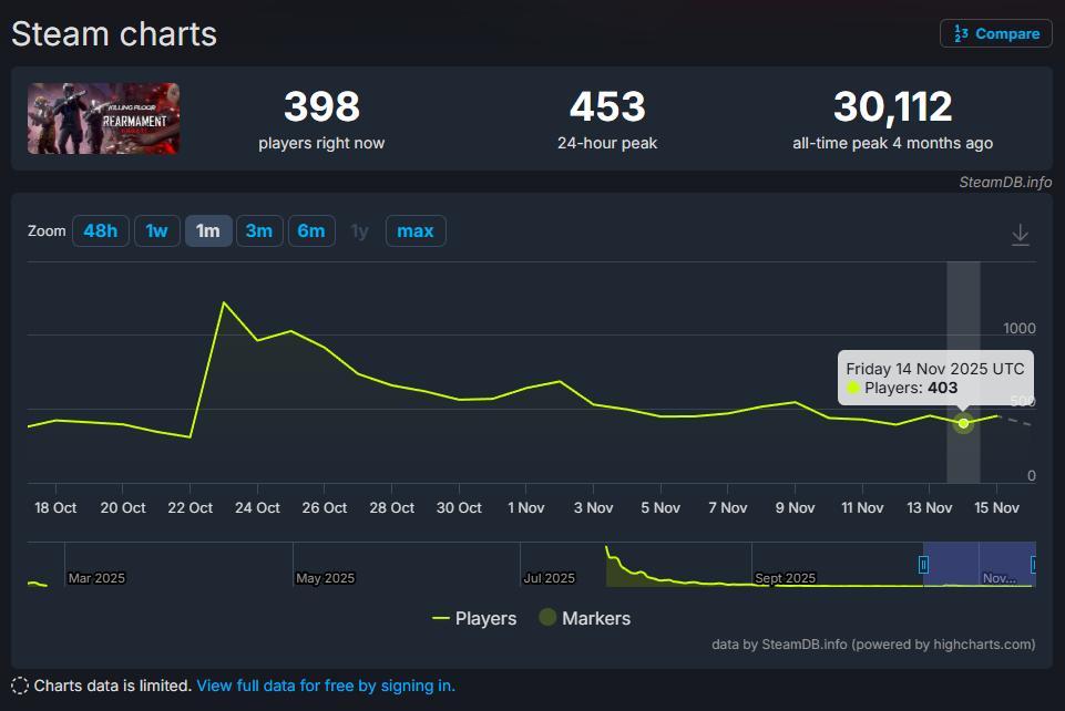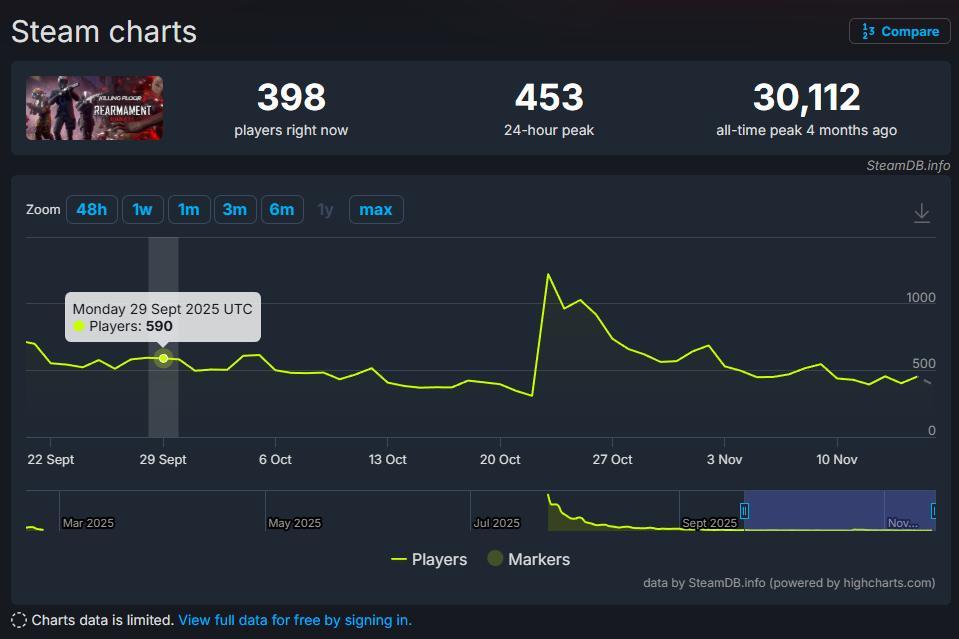 即便距離發售已過近 4 個月,社群罵聲從未停歇甚至已到懶得再罵的程度,官方仍不疾不徐跟著早就畫好的規劃藍圖 (Roadmap),甚至遊戲已經有過兩次的 8 折優惠,分別在9/29 (秋季特賣) 和10/23 (發售後的第一次較大更新),但玩家人數仍未見明顯增長。