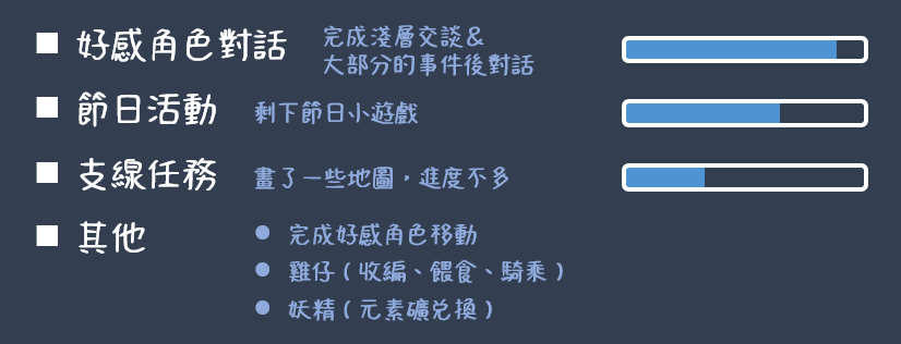 -繼續推進遊戲主體!後續內容還剩下:節日活動 → 羈絆任務 → 支線任務 → 測試&優化