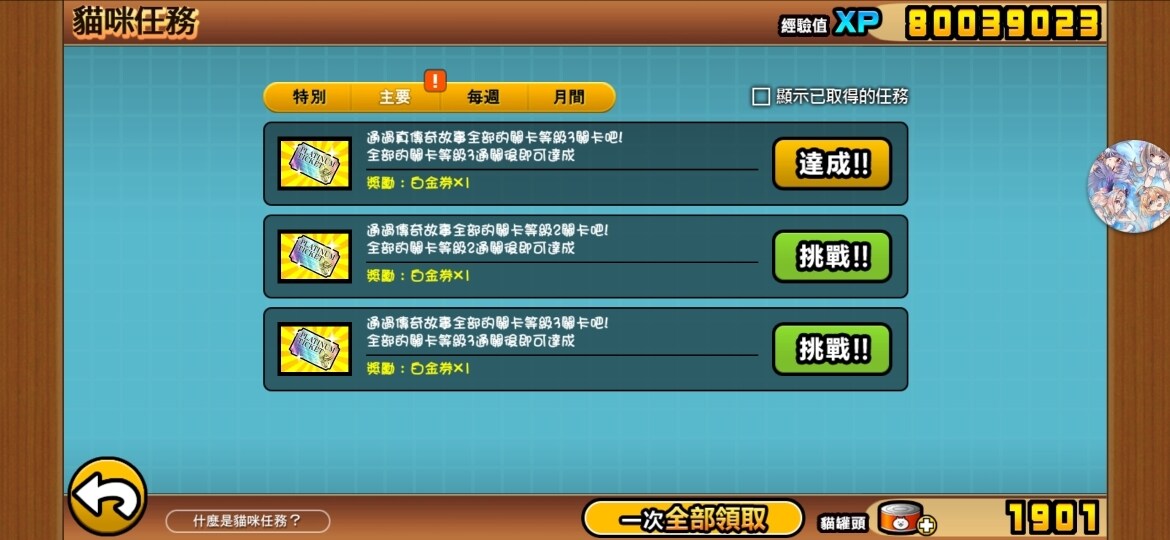 有玩家可能會問說:「要先打哪個?哪個比較簡單?」但我會說都打看看,畢竟所有關卡難易度都跟貓棚有關,有些玩家抽到強大超激輕鬆碾壓,有些玩家抽不到只能痛苦慢慢打,所以在這點上我不回答。