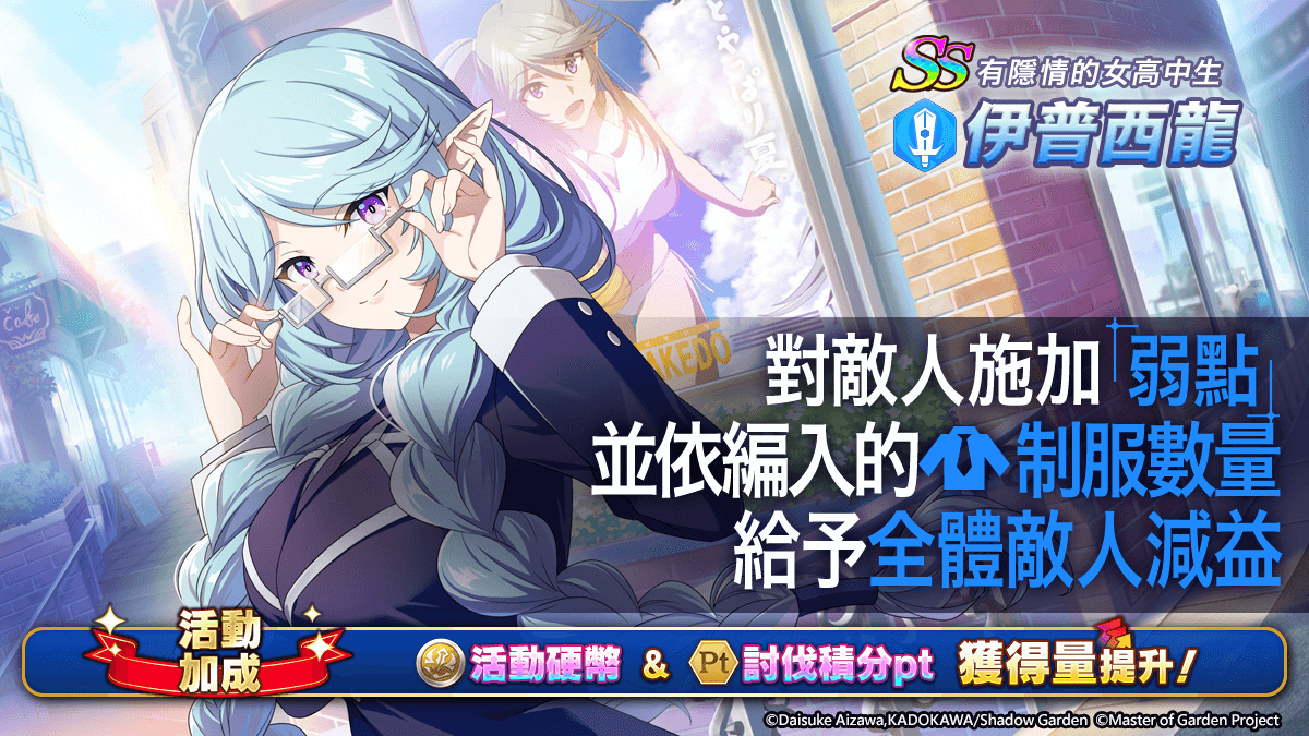 伴隨期間限定活動『HIGHEST DREAM Ⅲ』舉行,自 3 月 20 日率先登場的期間限定轉蛋卡池角色【有隱情的女高中生】伊普西龍,是名對敵人施加「弱點」並依照編入的制服數量給予全體敵人減益的藍色屬性輸出角色,日後則會實裝【颯爽たる生徒会長】伽瑪。