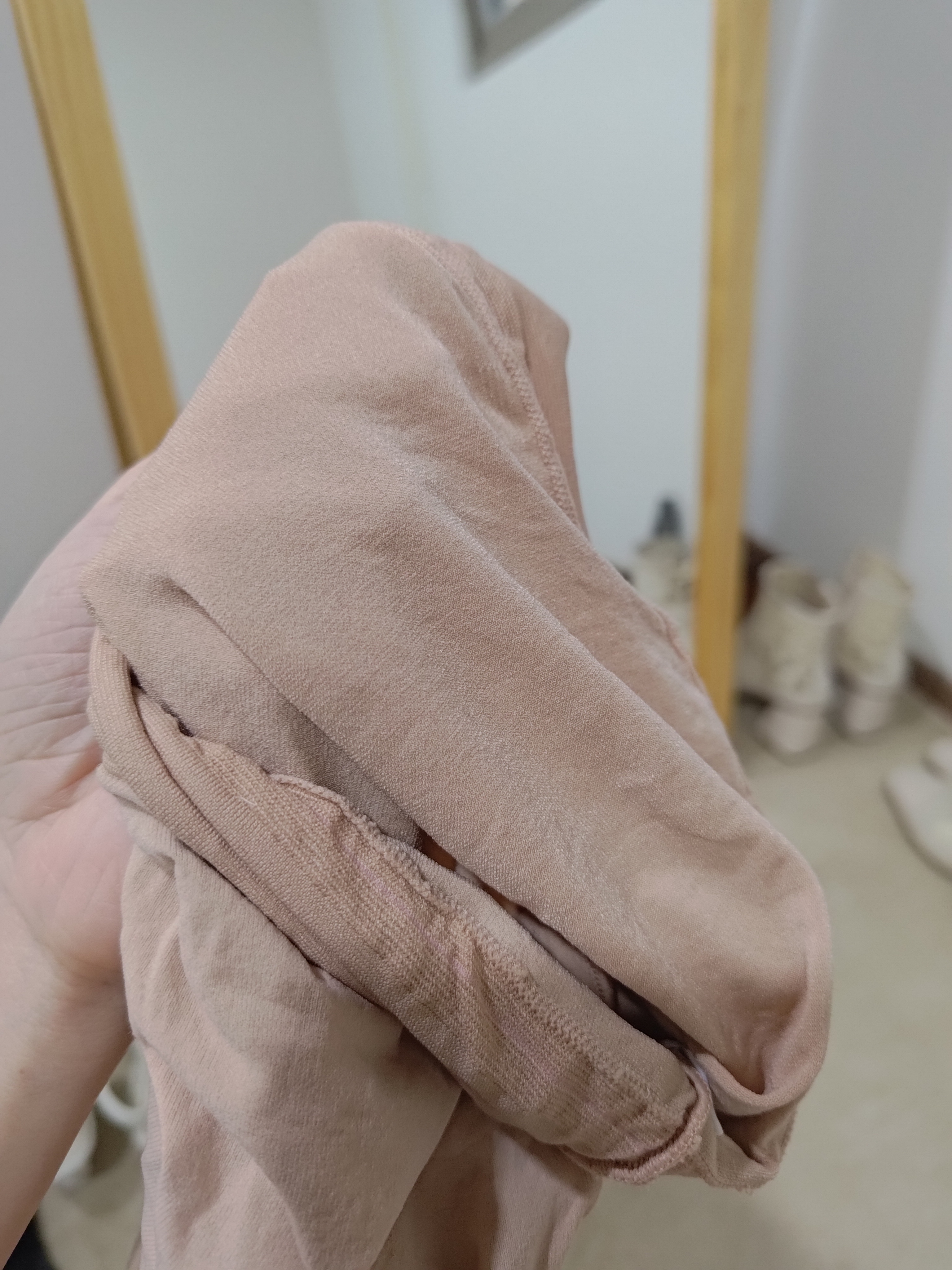 這雙是我看threads上有人推薦而買的,32是偏亮的粉米色,襪子實體顏色看起來有點可怕,但穿上去其實還好,就稍微偏淺。