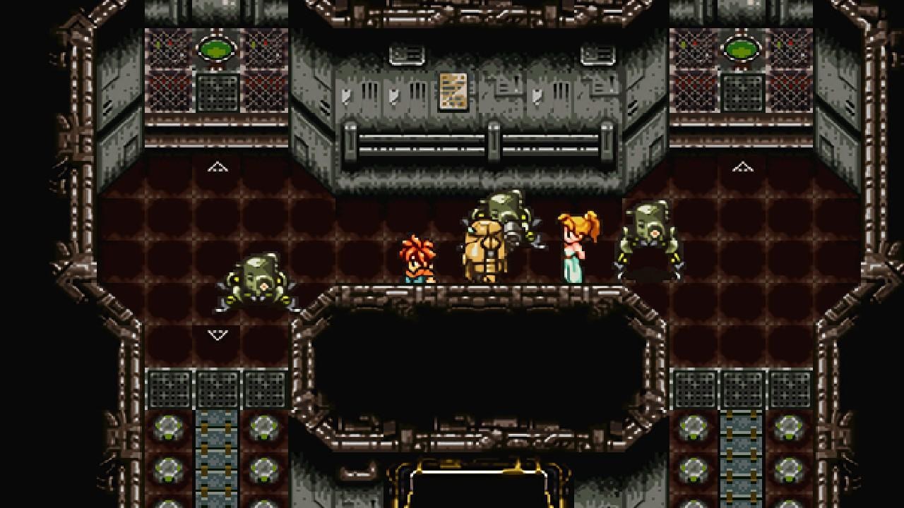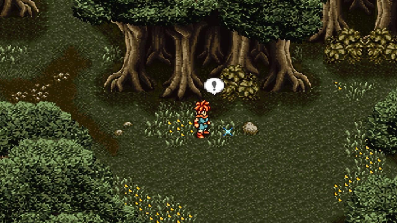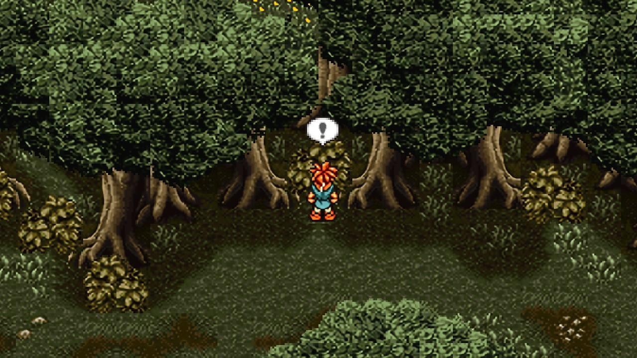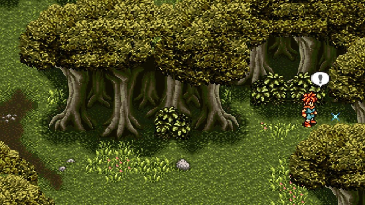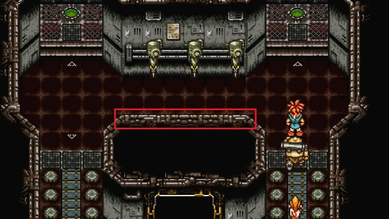 下樓梯時記得把開寶箱,下樓後,被士兵追到森林右方的空地, 進入時空門前往A.D.2300