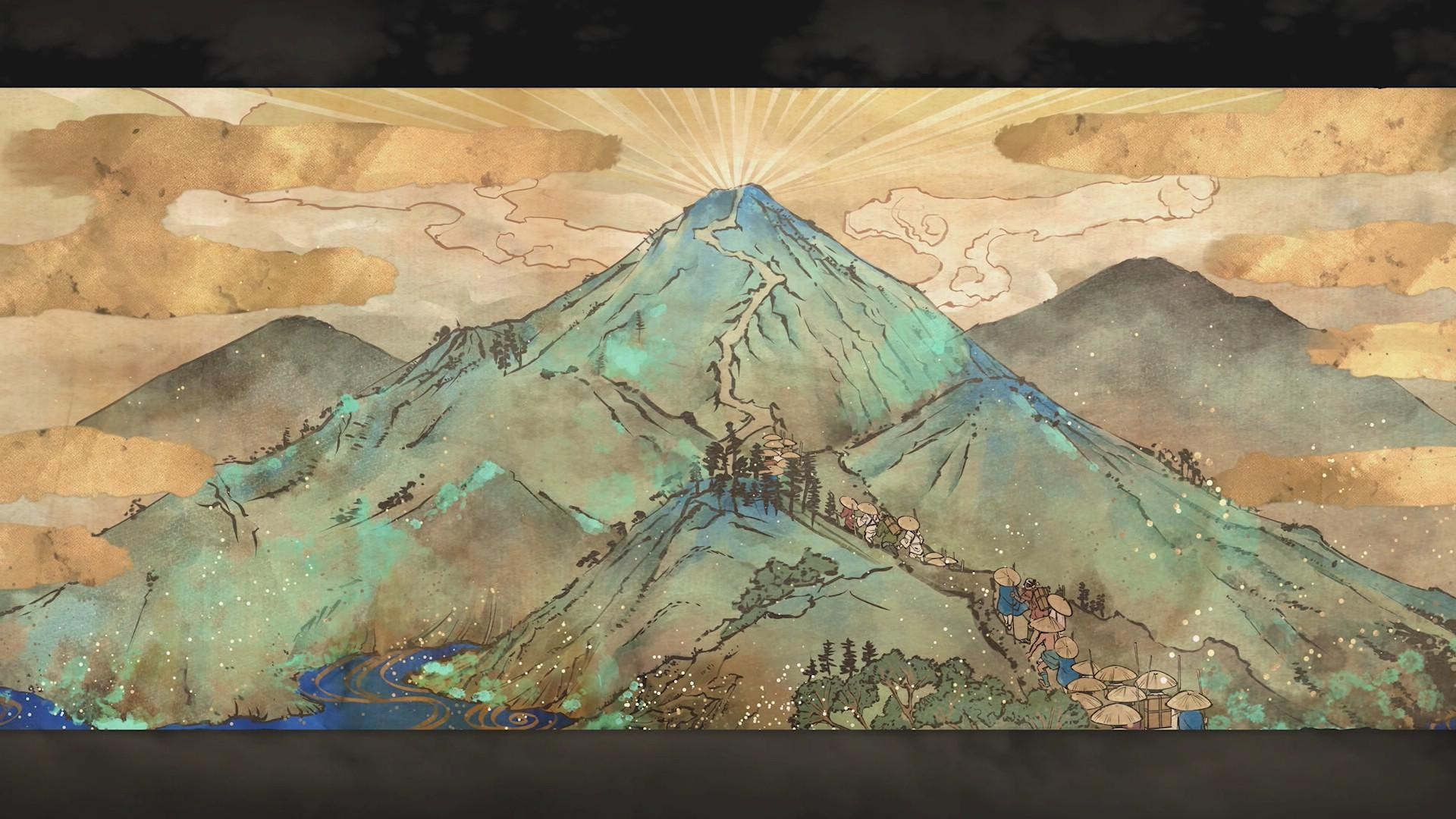 從包裝上有著獨特又鮮明的和風世界背景,遊戲故事描述一個古日本世界,一座原本在山神庇佑下足以安居樂業的禍福山