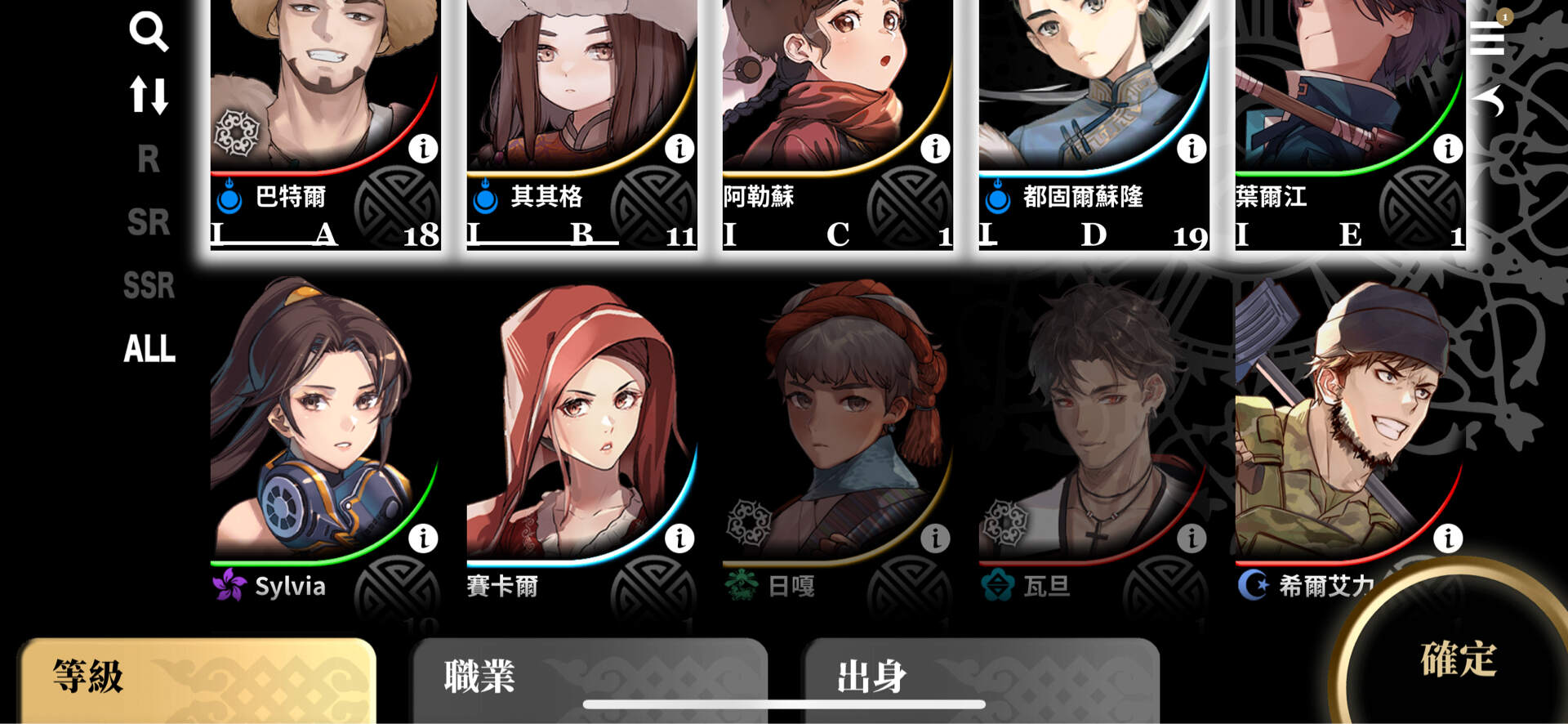 編隊跟幹部的功能相似卻分開使用,編隊可以看到所有角色,但標籤SSR、SR、R的功能卻很兩光,每次點完出來都會回到AII,根本沒有記憶功能,彷彿是中國原代碼套皮遊戲的規格,從A>B>C回來B時卻跳到A,真的很難想像,這麼不人性化的介面是千萬大作….