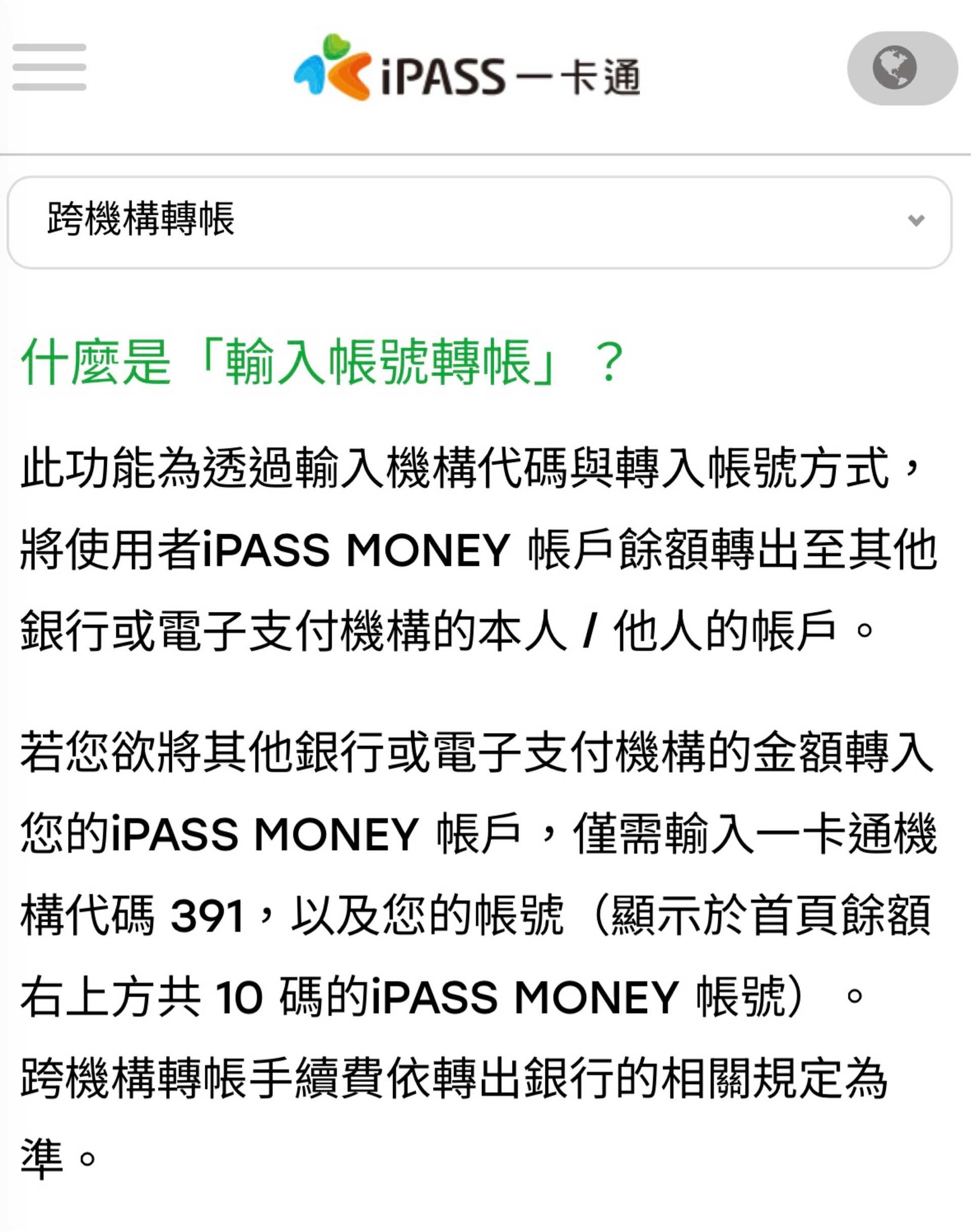 | 匯入手續費 | 匯款端銀行決定,免費次數內皆免費;iPass帳戶平台內互轉免費 |