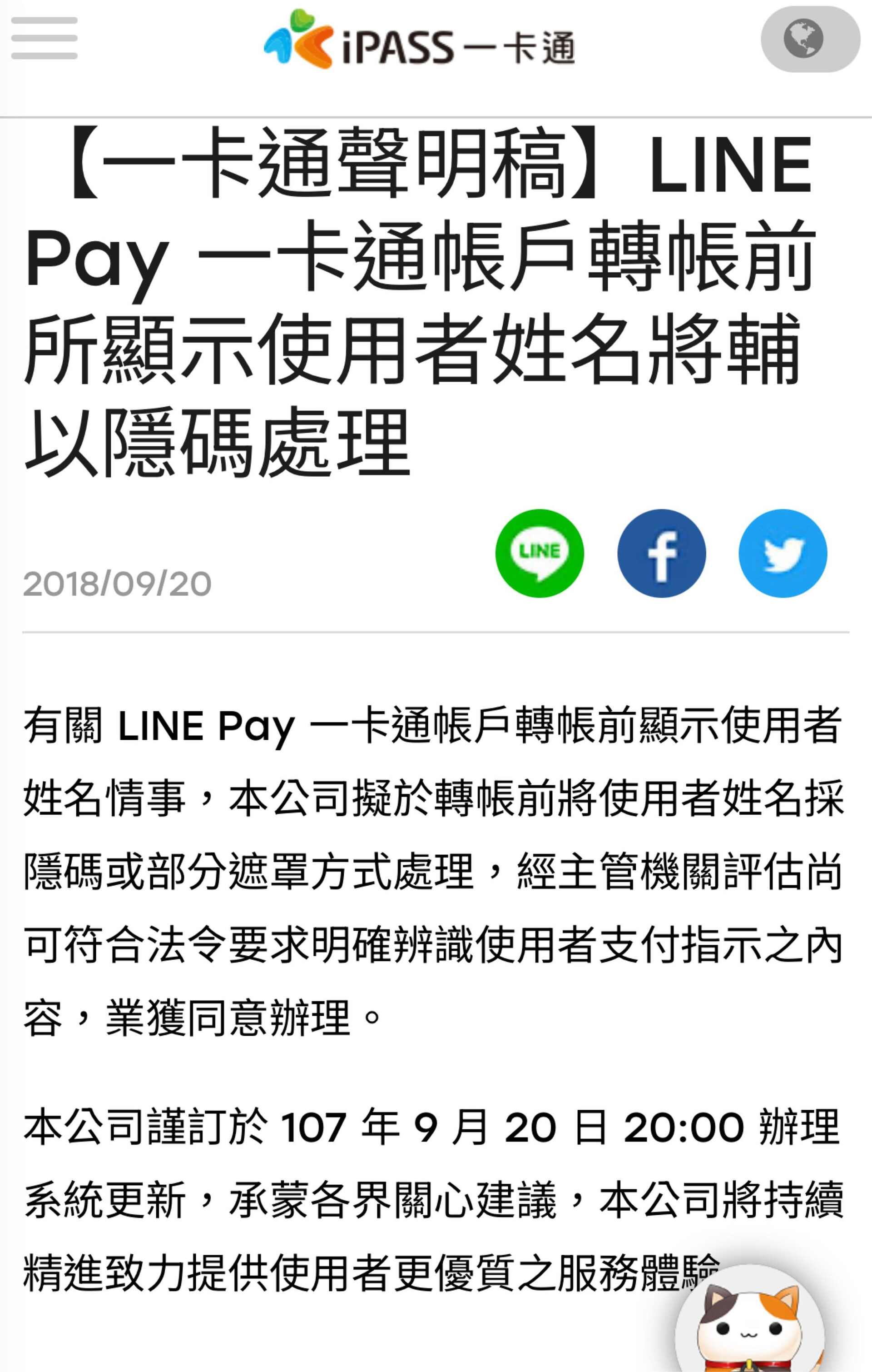 這是電子支付帳戶,屬於LINE PAY底下可綁定的一卡通(iPass)付款服務。可以從銀行帳戶匯入贊助,也可從LINE的LINE iPass轉帳(不需要加LINE好友)。