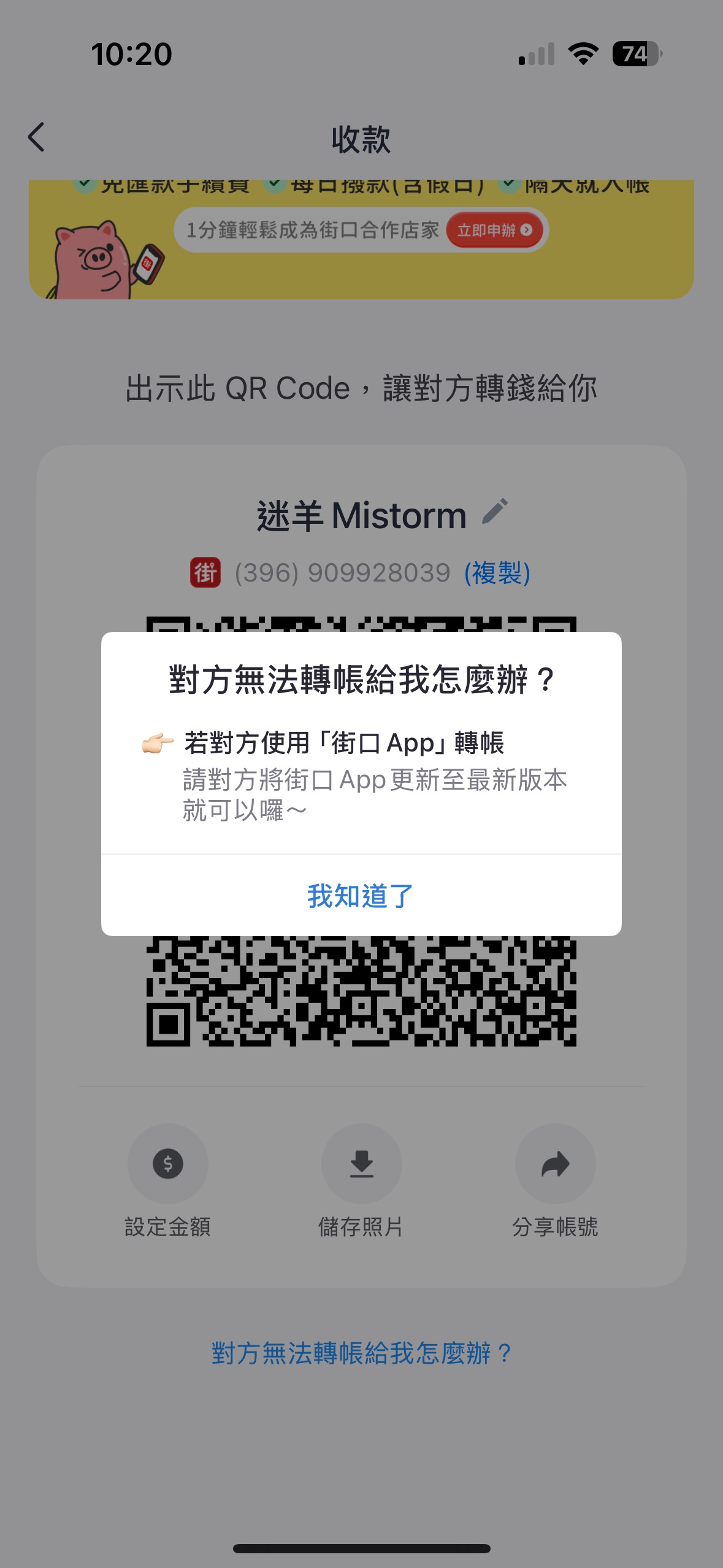 LINE掃一下就能iPass轉帳 號碼是轉帳碼,別和帳戶號碼搞混 |