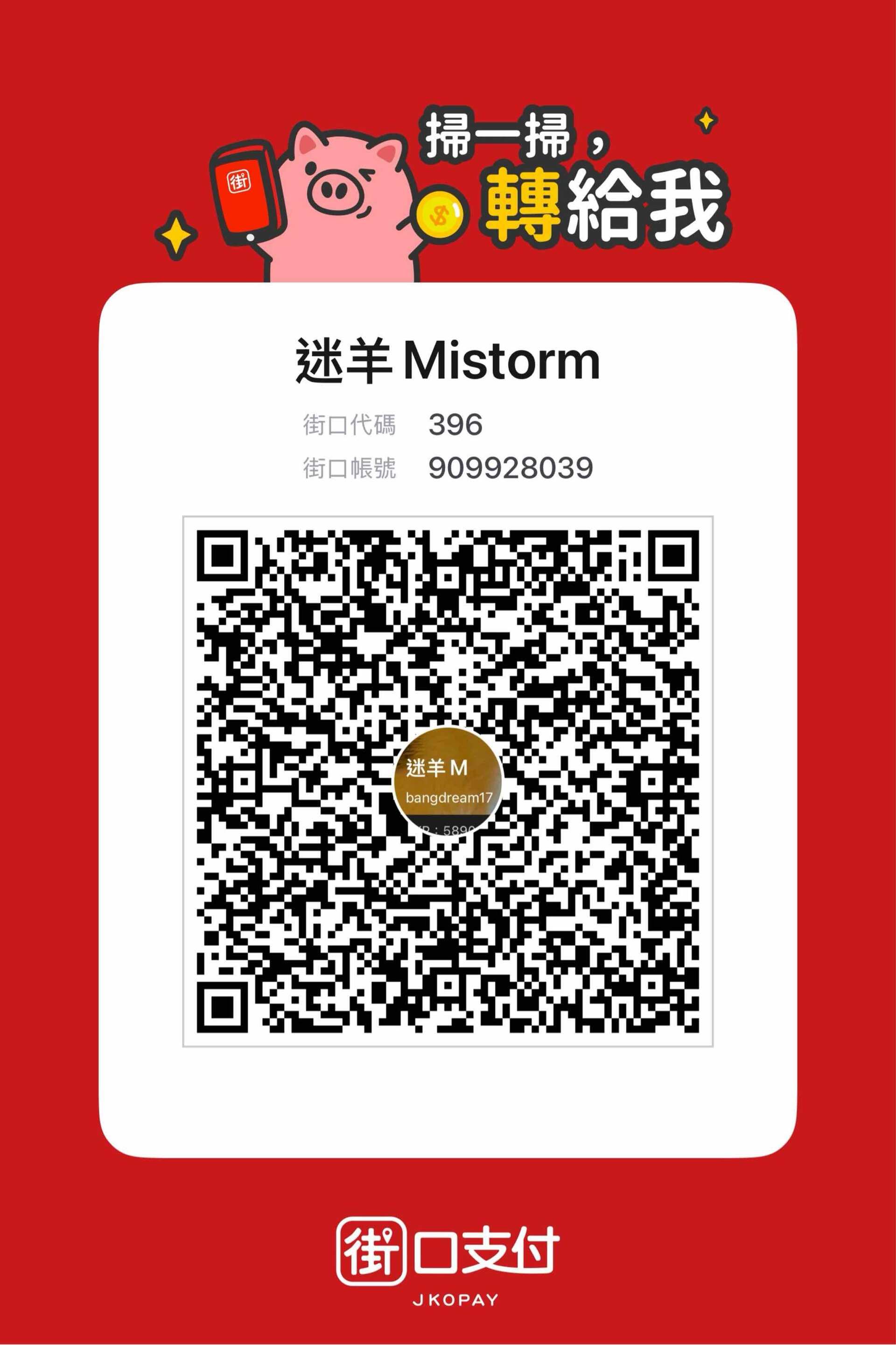 1.選擇代號「396(街口支付)」 2.輸入收款帳號「909928039」 3.輸入贊助金額 4.留下想說的話(作為Super Chat)或空白 5.送出 |
