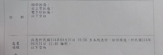 在10點前往醫院驗傷