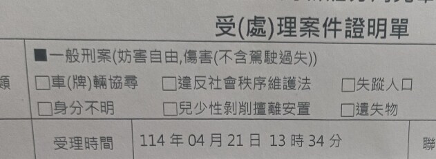 等櫃檯一個小時才輪到我,我跟他講要驗傷