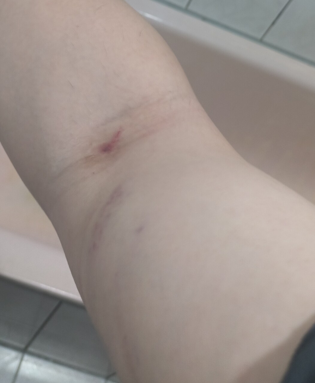 然後他就開始發瘋,抓傷我的手,掐我的脖子,發現掐不動改用勒的