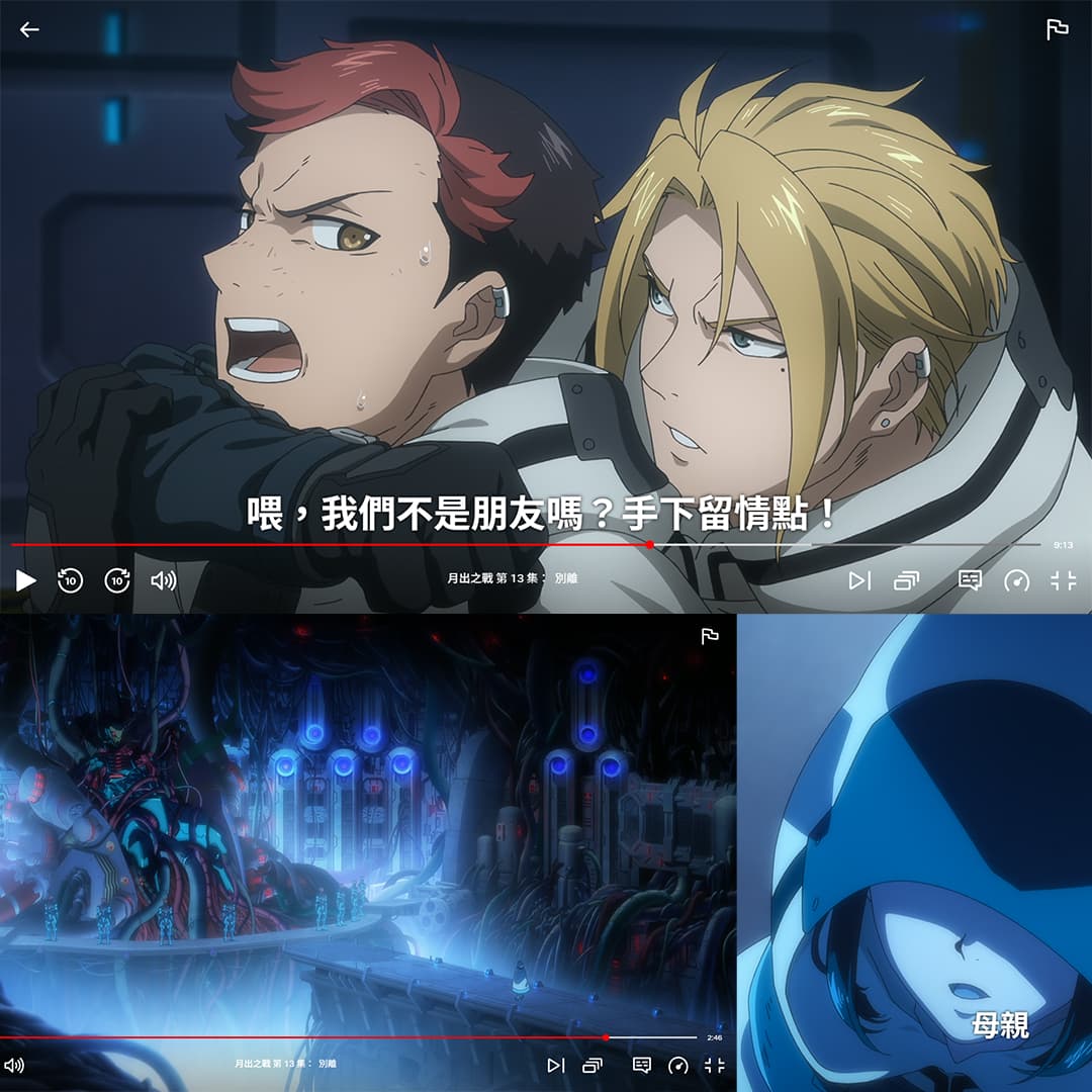 本作劇情是最被人詬病的部分,我對此非常認同,首先談談前3集,開場就是一段秀肌肉的打戲,並在首集完成世界觀介紹和埋去月球的動機-復仇,同時用了跳序埋藏伏筆,足以吸引觀眾看下去。