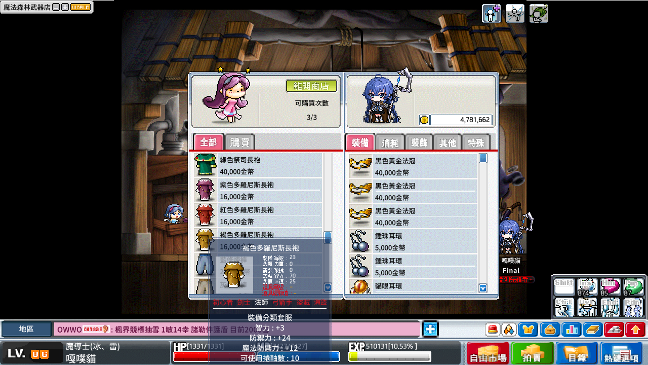 有預算有找到高屬性的可以衝套服智力 60%/100%,但是我覺得卷軸太貴了衝了不太值得,不過說實話也沒地方能花楓幣