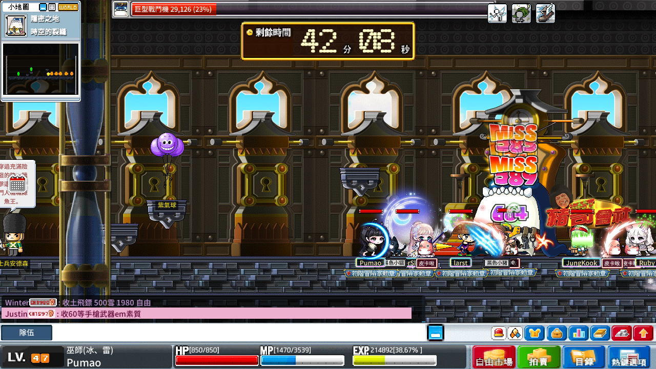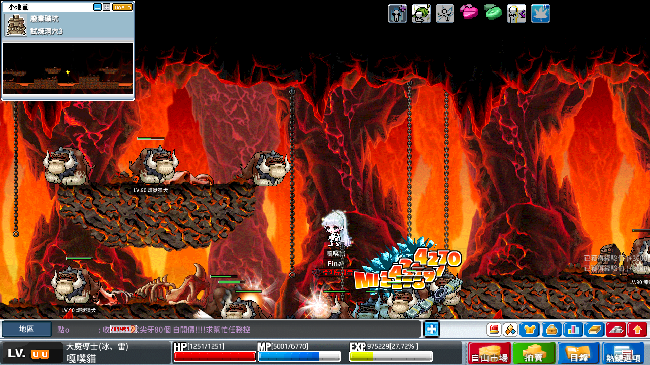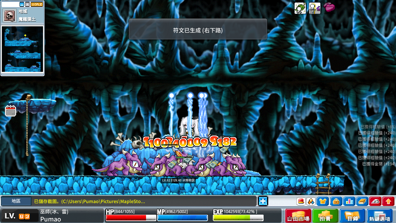 大法最舒服的一張圖,我 20 年前也在這邊炸了很久,在 2 下暴風雪的情況下 10 分鐘經驗值能高達 250 萬,但是每小時會消耗 1000 萬以上的楓幣,只適合存款雄厚以及有人提供藥水帶吸的情況