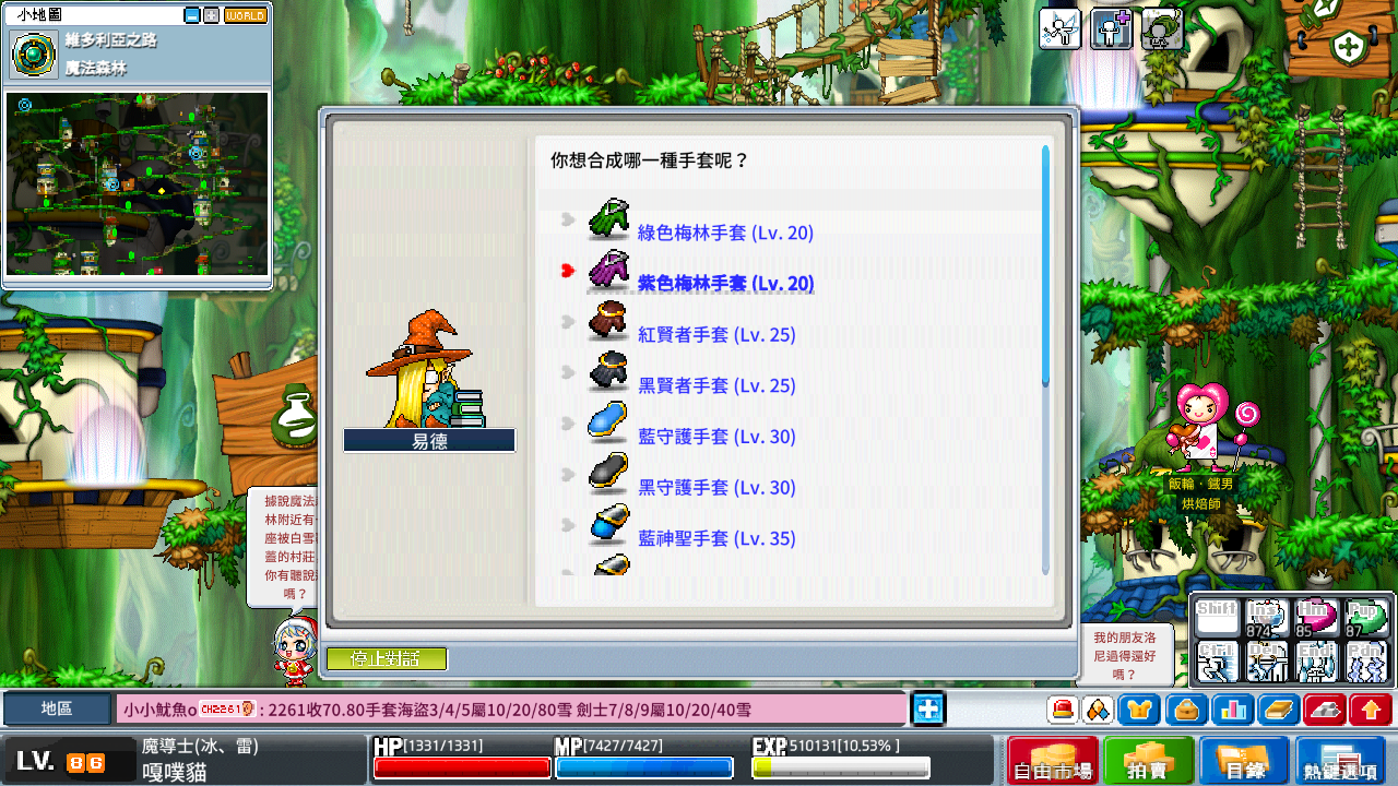 ▲ 紫色梅林手套可以找魔法森林的製作 NPC 製作