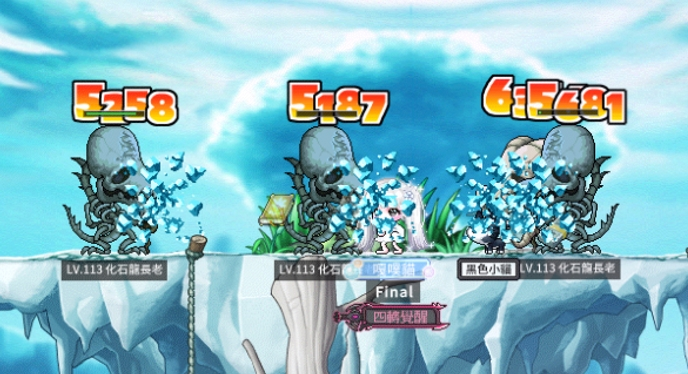 楓葉祝褔(9)一般玩家基本上還是會以閃電連擊來練等,雖然刻板印象上是大法炸炸炸,實際上在資源不足加上角色不強的環境上初期暴風雪可能只比閃電連擊多個幾十萬點經驗值,但是消耗的水錢卻可能是 10 倍起跳