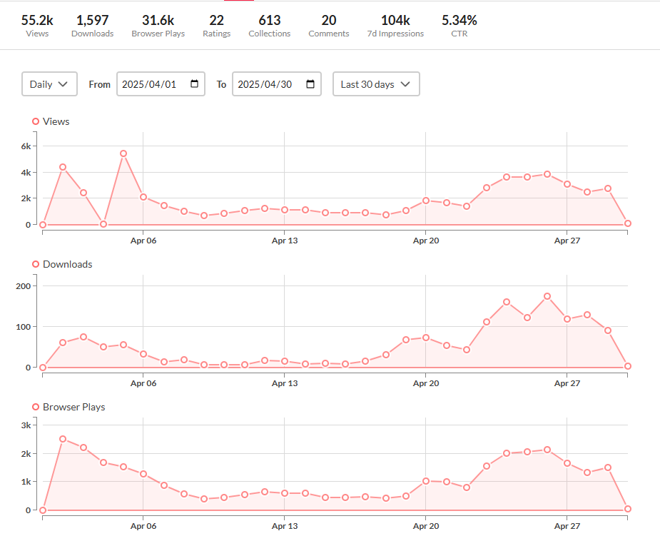 接下來是這一個月在itch.io的數據