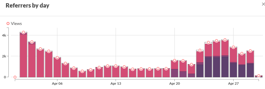 4/20左右又開始有流量是因為我在其他小黃油網站投稿了作品,等等會提到。