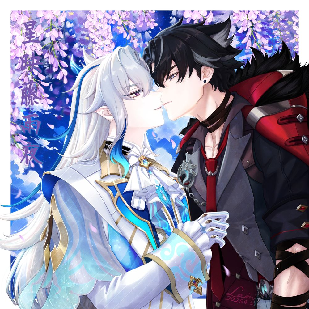 但後來覺得夜晚比較有氣氛,就改成夜晚的背景(雲的部分是用AI生成的素材,懶得畫背景XD)。