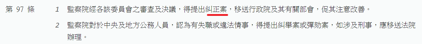 自糾舉改提"彈劾"(楊易有說過糾舉其實不是重點,監察院的重點考點在於彈劾):