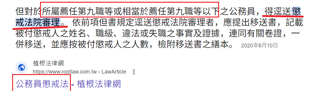 彈劾:直接將該員送懲戒法院(含薦任九職等,與薦任九職等以下,可由服務機關逕送。)