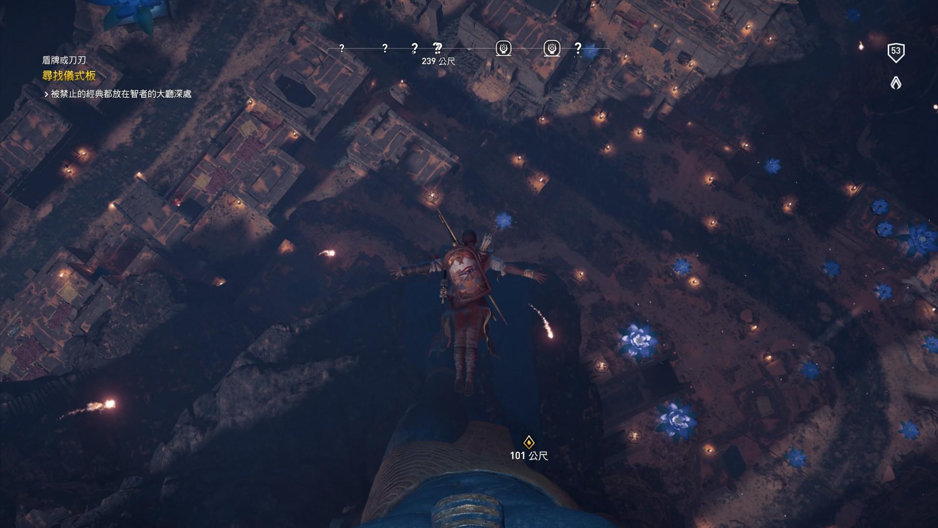 因為《起源》我是在2020年就破了,前幾年因為更新設備很多照片都不見了,只留了幾張,巴耶克的信仰之躍超帥的!題外話,圖上的藍睡蓮在埃及有「死者復生」的意涵,以前我有一支肚皮舞舞碼就是以「藍睡蓮」為主題去跳的。