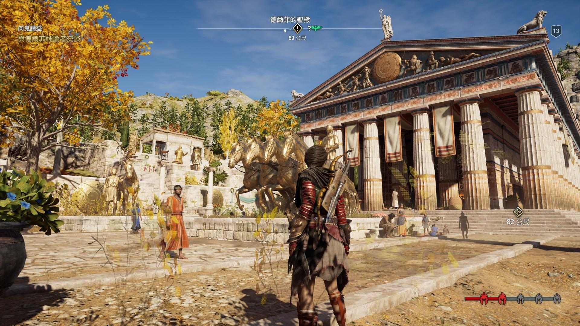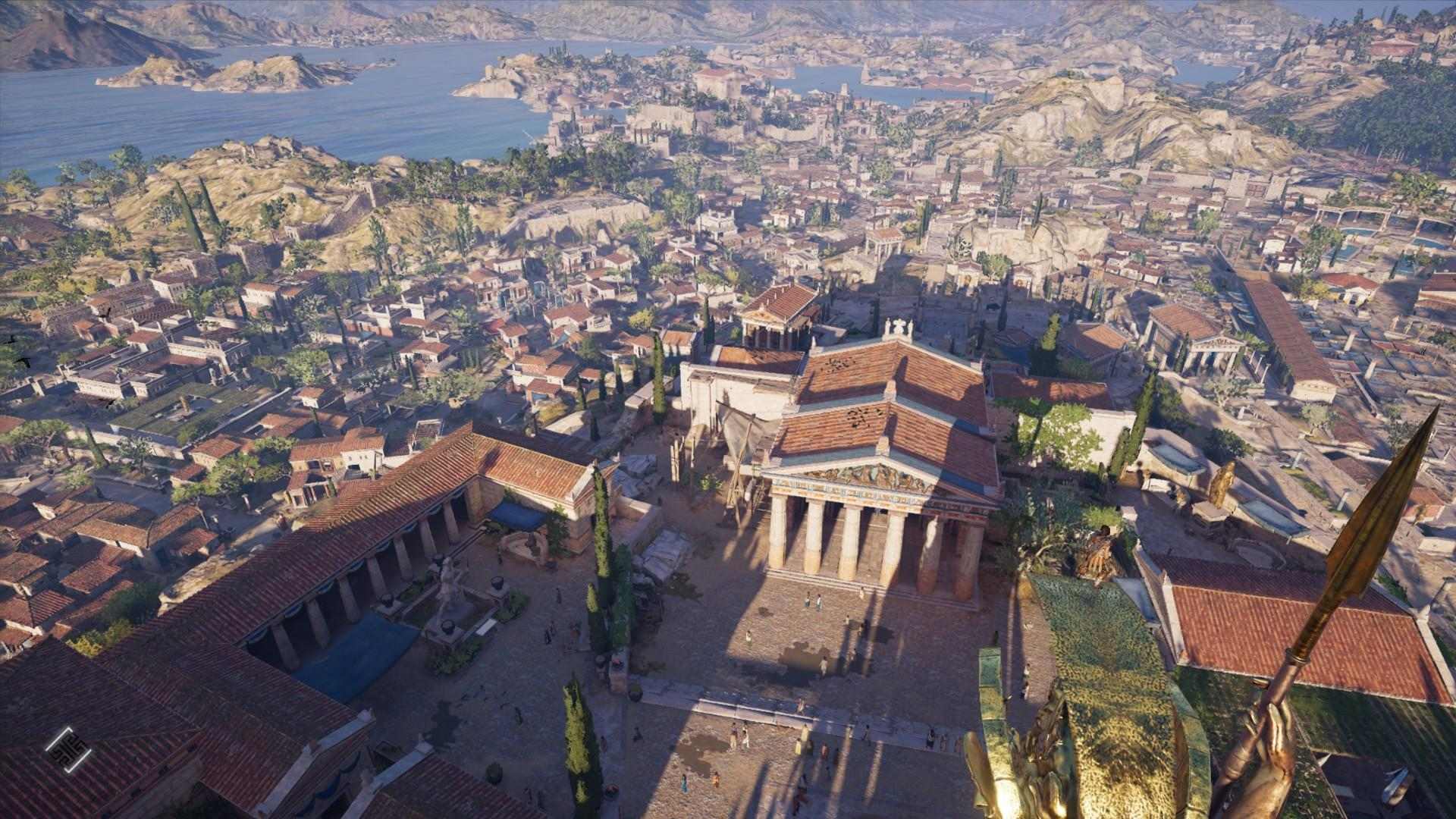 而的確,本作的壯麗山海與希臘式建築、各個不同愛琴海島嶼上的民族抑或是史詩般的音樂,以及與劇作家甚至是哲學家們的客串登場,都成功地在某些時刻讓我驚艷不已。當我與女主角卡珊卓一同登上帕德嫩神廟的屋頂,看著整個雅典城的夕陽或日出,我是滿心讚嘆的。