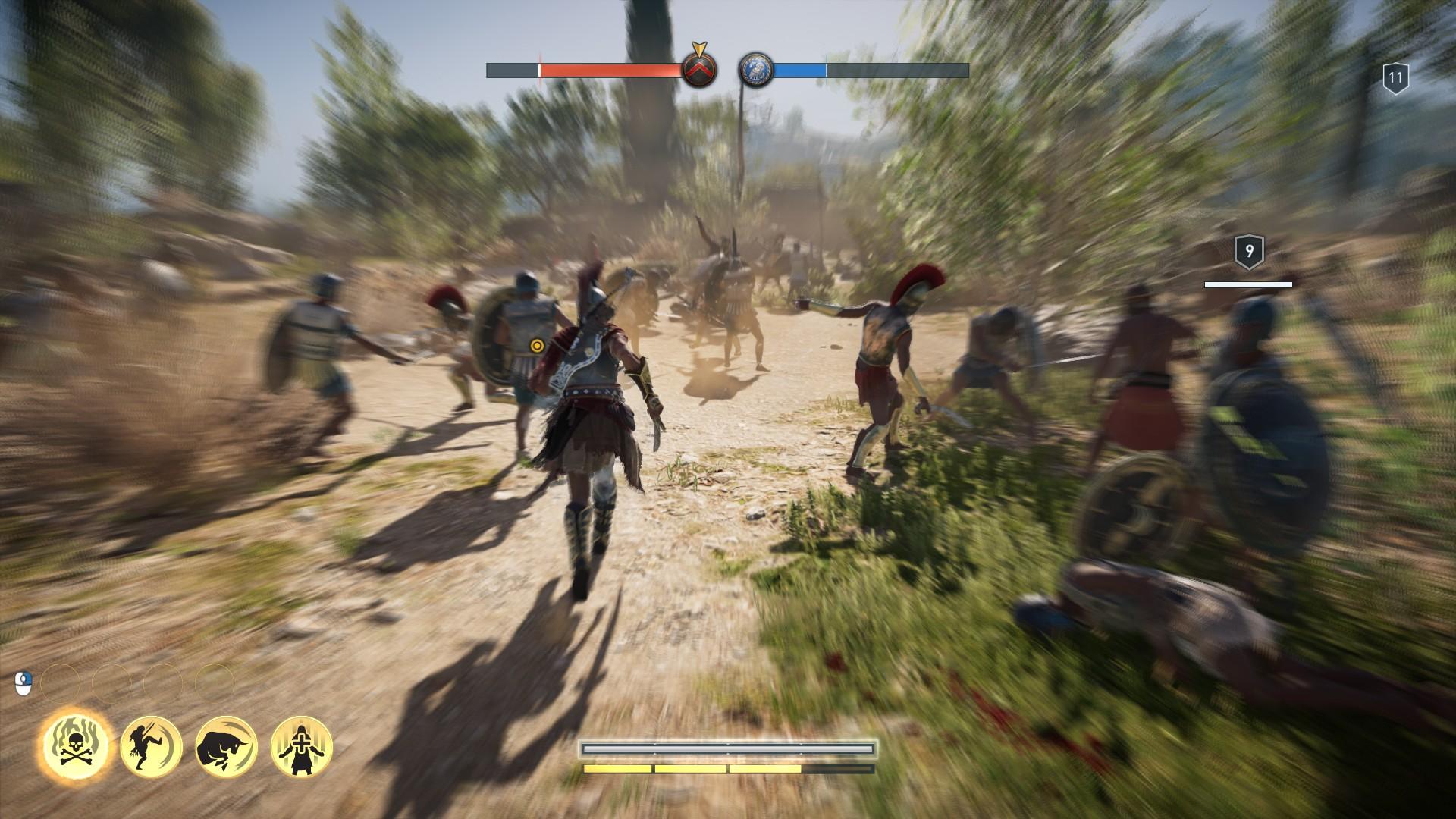 這裡還要提一點關於城邦戰,因為本作是設定在希臘伯羅奔尼撒戰爭時期,因此玩家是可以選擇在戰爭時期幫助雅典軍隊還是斯巴達軍隊,當然遊戲主線是明確的表示這一場戰役是秩序神教在背後操作的,為的就是能夠應用法理統治整個希臘(基本上《刺客教條》系列都會盡量讓遊玩這些歷史大事件能夠與故事作連結,這也是我很喜歡本系列作的地方,能夠用不同視角去看待不同歷史。)但我覺得本作對於這個歷史大事件的敘事非常薄弱,對標上一作,《起源》描繪了埃及托勒密王朝晚期,埃及豔后以及托勒密之間的政治角力,中間也有上古維敘者的干預,但你會看到在《起源》中,我們的男女主角被不同勢力攪和在一起,他們除了要為被殺害的孩子報仇,同時又要面對不同的政治鬥爭,我覺得在歷史借鑒上,《起源》真的比《奧德賽》好很多。而城邦戰作為本作的一個新亮點,卻沒有呈現出對於不同陣營幫助後會帶來甚麼後果,基本上你想幫誰都可以,頂多就是影響拿到的一些數值跟裝備,並沒辦法因為你偏向哪一方勢力能夠影響到整體劇情,而且可能是近年來被太多史詩戰役遊戲洗眼睛,覺得本作的城邦戰…頗水的。(一定是真三國無雙起源害的XD)