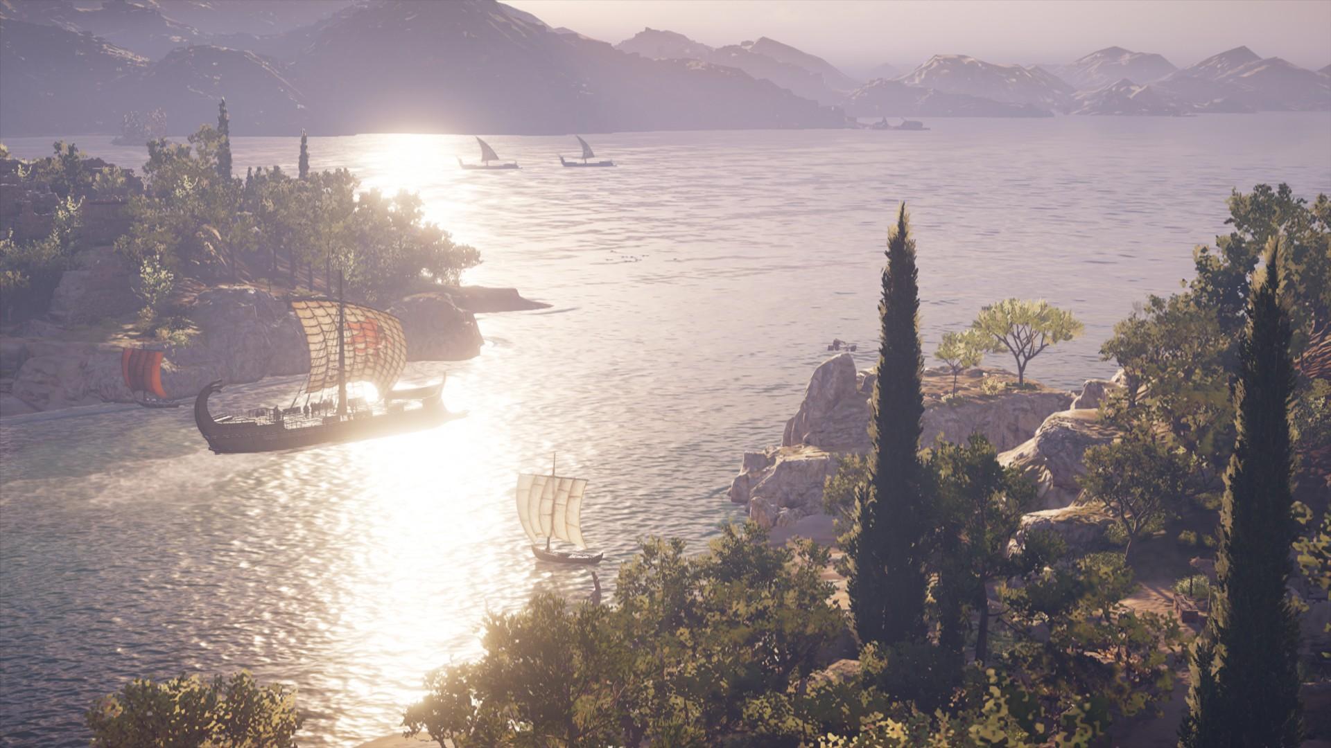 無論是本篇的各個島嶼與城邦,還是DLC中亞特蘭提斯的奇幻建築,皆有極高水準的視覺呈現,擁有豐富的光影與細節,並且將愛琴海上的各個島嶼描繪得非常精緻。