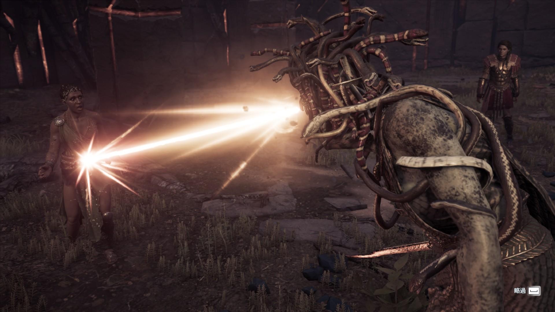 與梅杜莎戰鬥是我最難忘的 BOSS 戰,當時我46等,對上50等的她,整整打了一個小時才幹掉她。原本想說這是款輕鬆潛行刺殺遊戲(而且我還把難度開到最簡單…),沒想到變成繞柱殘血硬拼的求生記,我真的是研究了很久要在甚麼時機點完美閃避,甚麼時機點要繞柱子躲開,甚麼時機點開大等等的。那場戰鬥教會我一件事:等級壓制真的很機車!