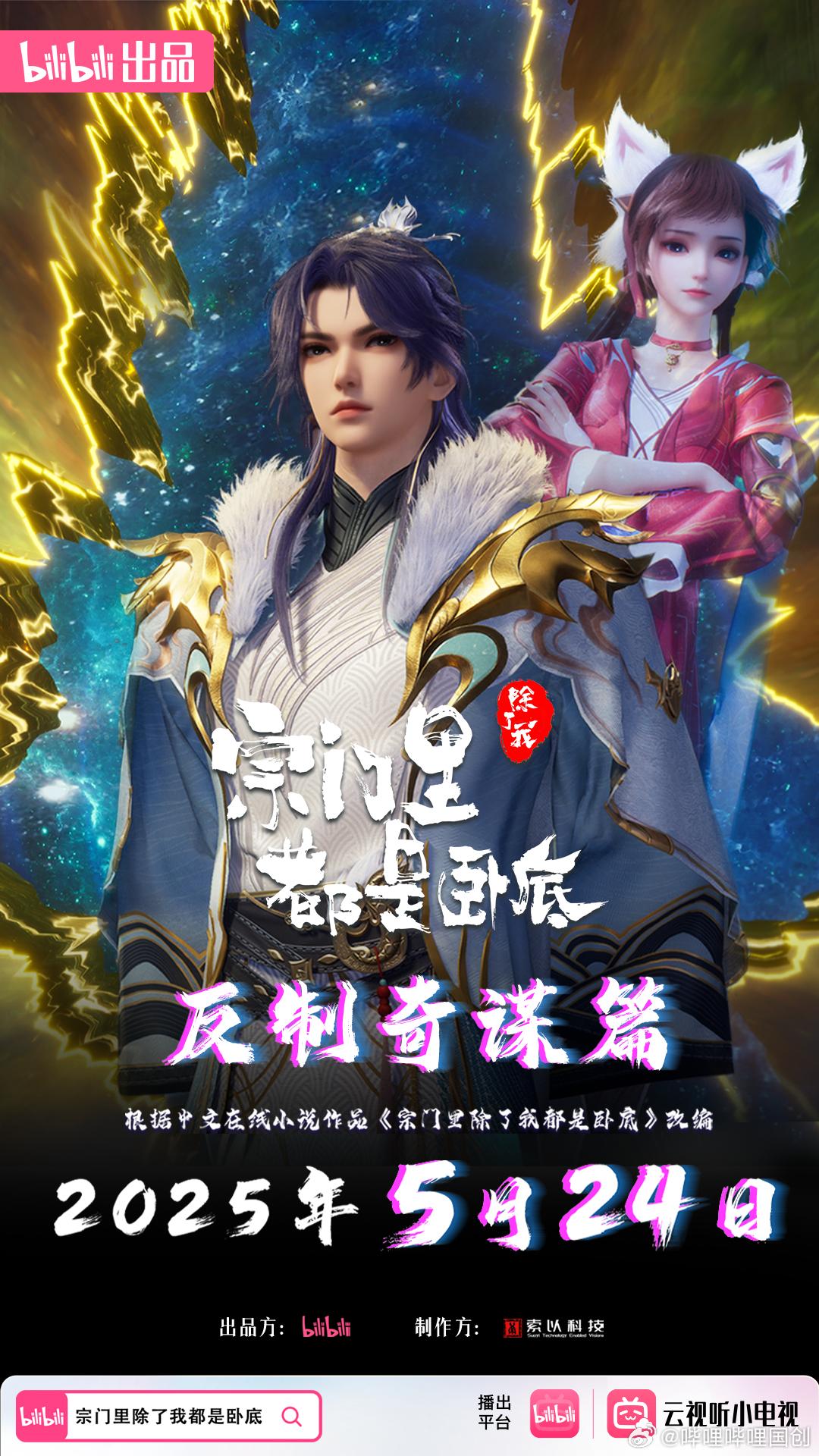 網路動畫《宗門裡除了我都是臥底》改編自「一隻兔子啊」老師,同名玄幻小說作品,動畫由「bilibili」出品,「索以科技」改編製作,動畫第 69 集迎來新篇章「反制奇謀篇」5 月 24 日更新。動畫「bilibili」每週一、週六 9:00 更新中,台灣可於bilibili、嗶哩嗶哩動畫 youtube頻道收看。