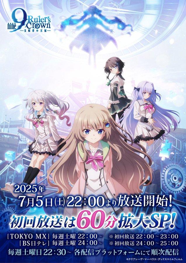 改編自視覺小說遊戲《9-nine-》的電視動畫《9-nine- Ruler's Crown》,宣布將於 2025 年7月5日開播的消息,官方在15日釋出第二支宣傳影片與片頭曲情報。
