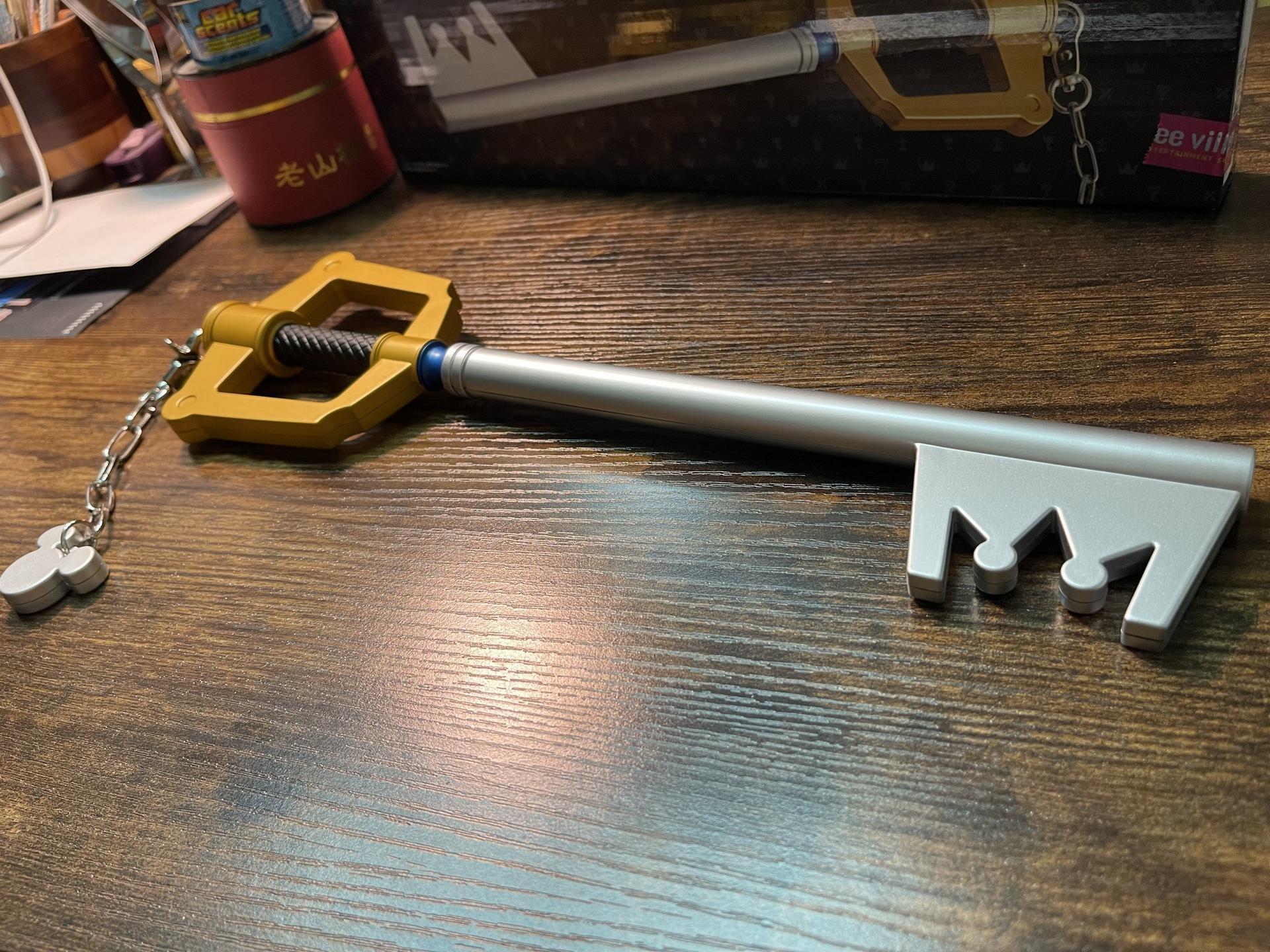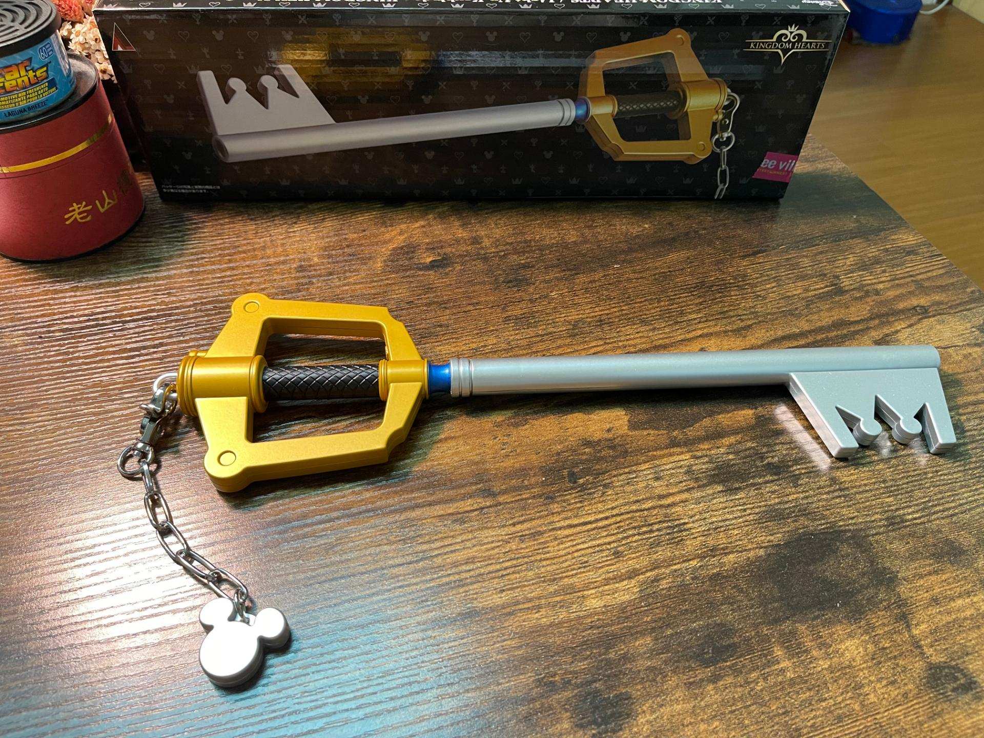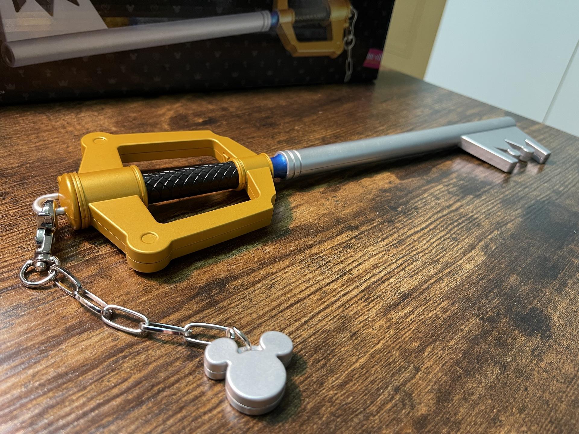 鑰刃的周邊來自SE官方商店e-STORE就有販售,先前曾有推出1:1還原版本,可惜錢包實力不足以駕馭無法使其現身,只能收藏官方推出的小比例版本,這把鑰刃前方設有LED能重現原作投影出鑰匙孔的場景。