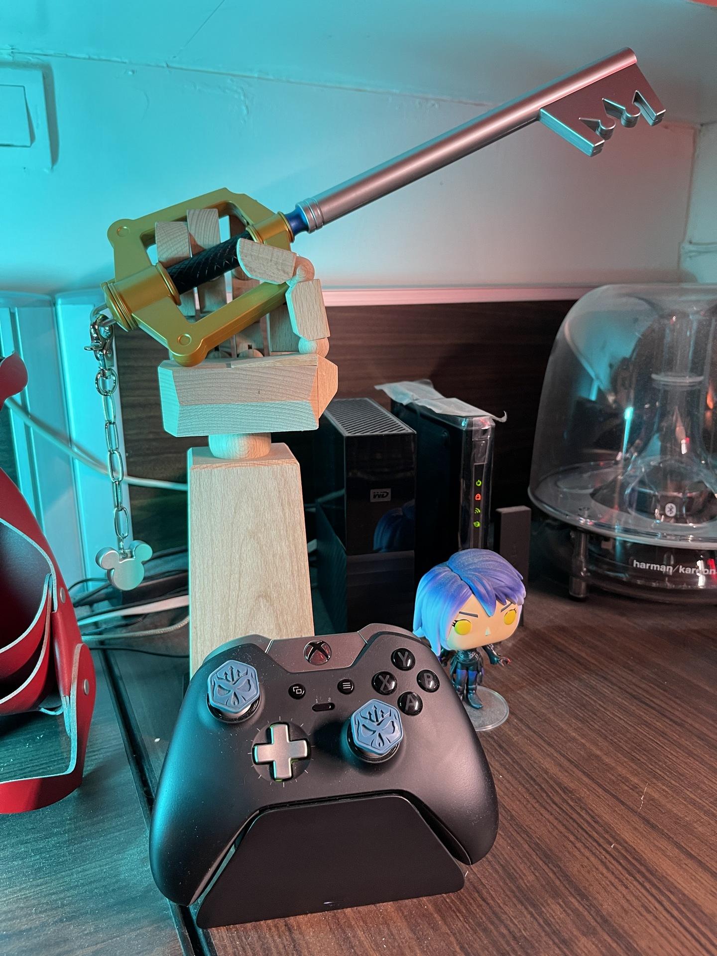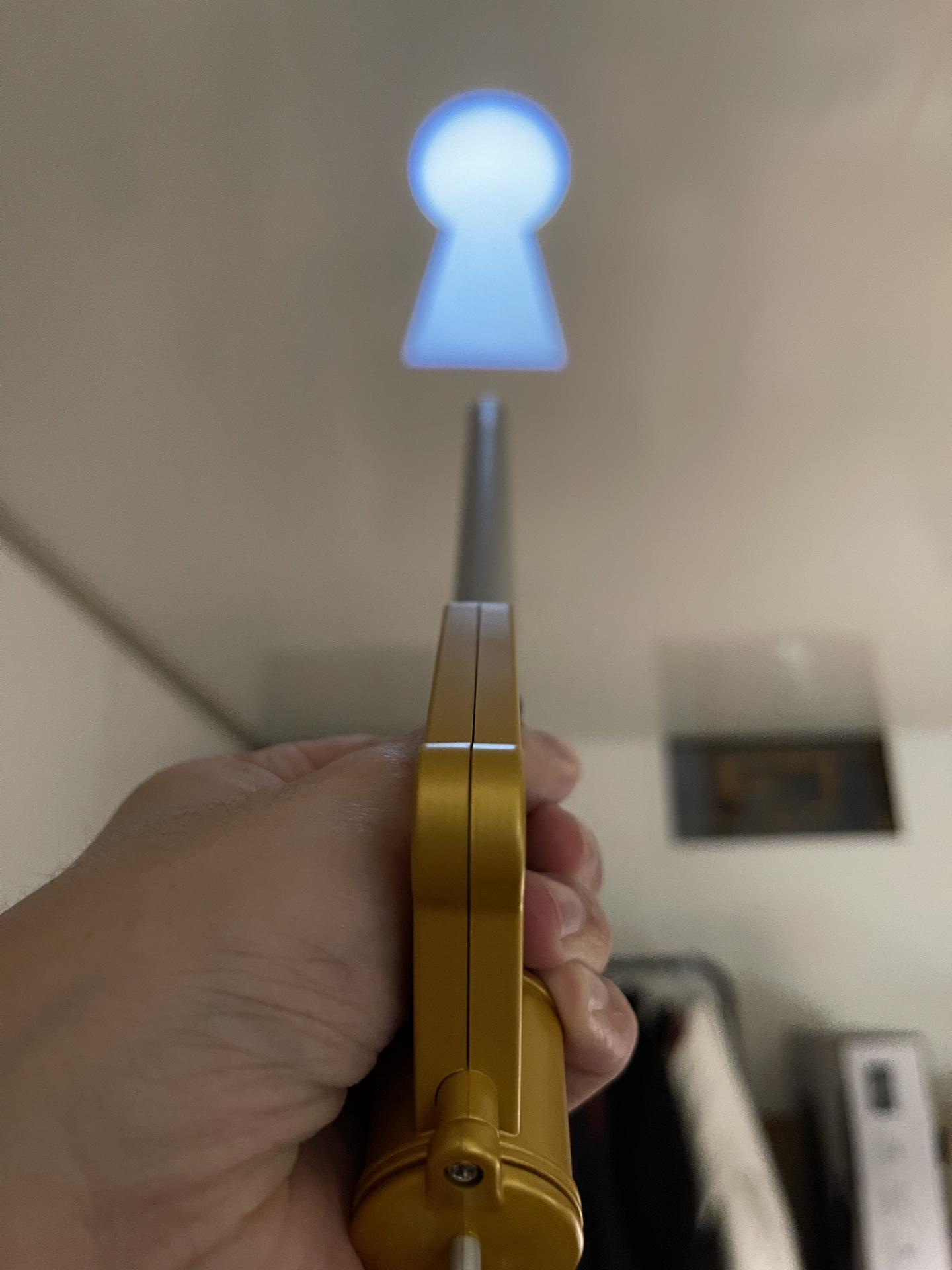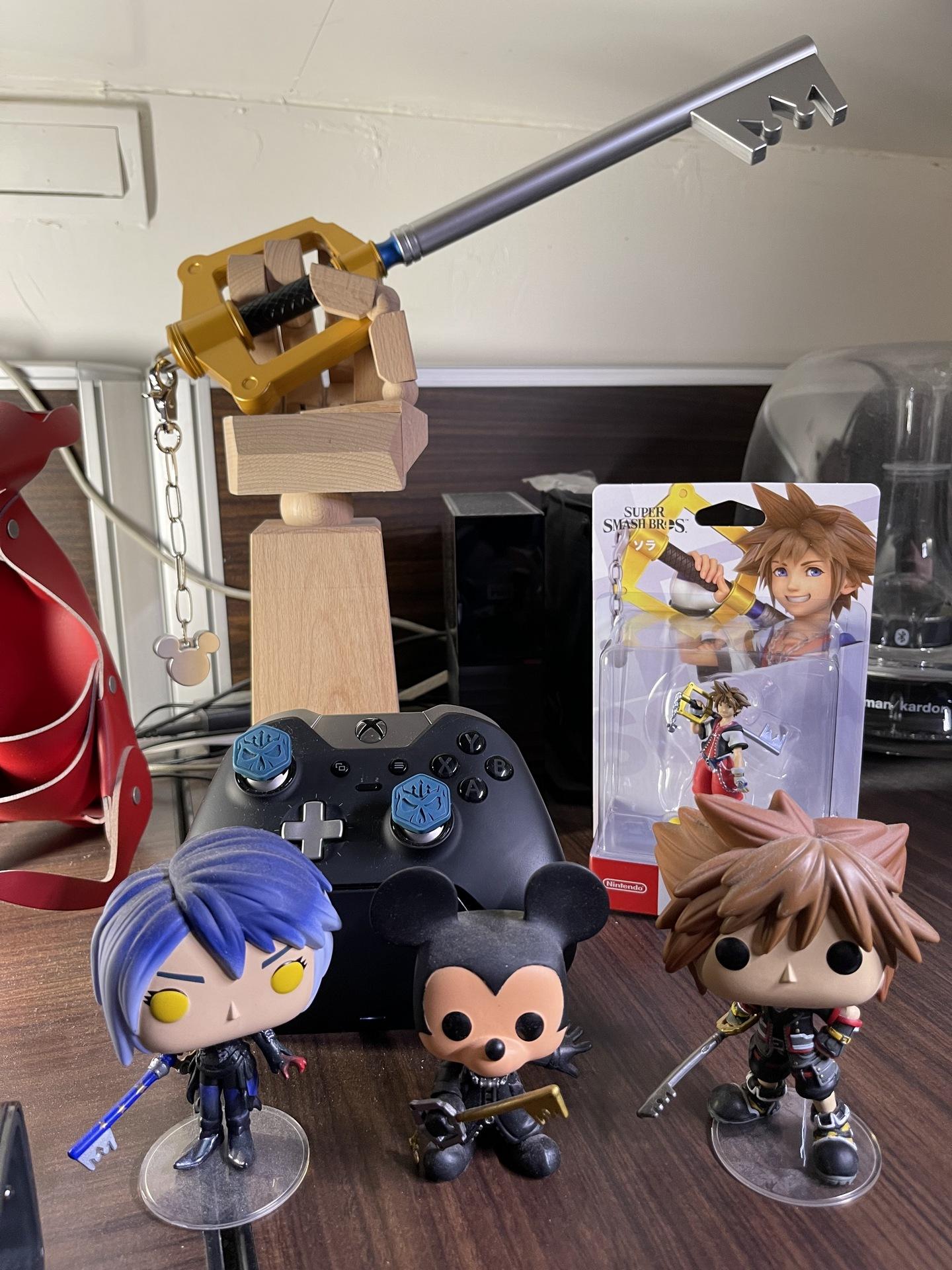 鑰刃的周邊來自SE官方商店e-STORE就有販售,先前曾有推出1:1還原版本,可惜錢包實力不足以駕馭無法使其現身,只能收藏官方推出的小比例版本,這把鑰刃前方設有LED能重現原作投影出鑰匙孔的場景。