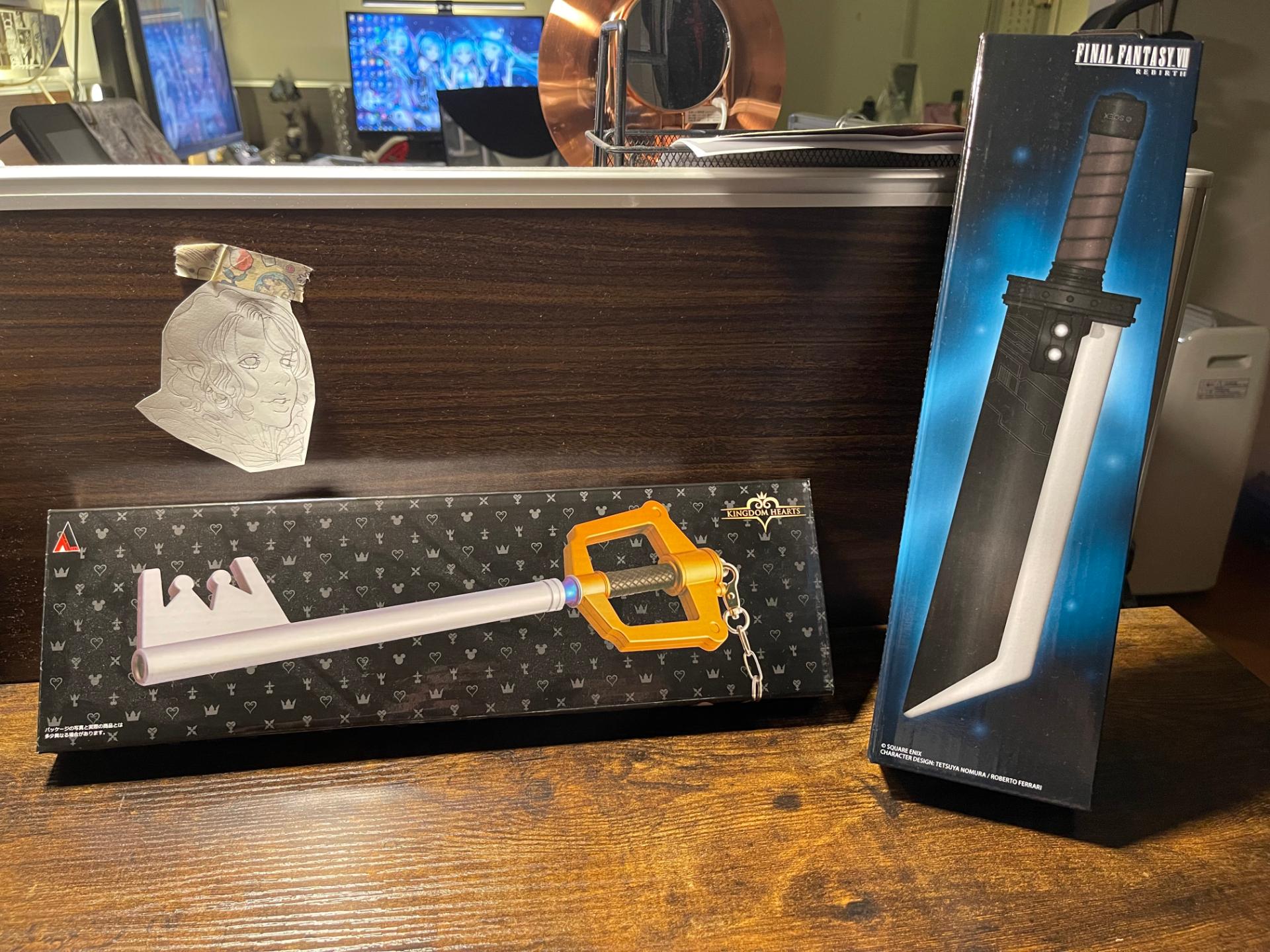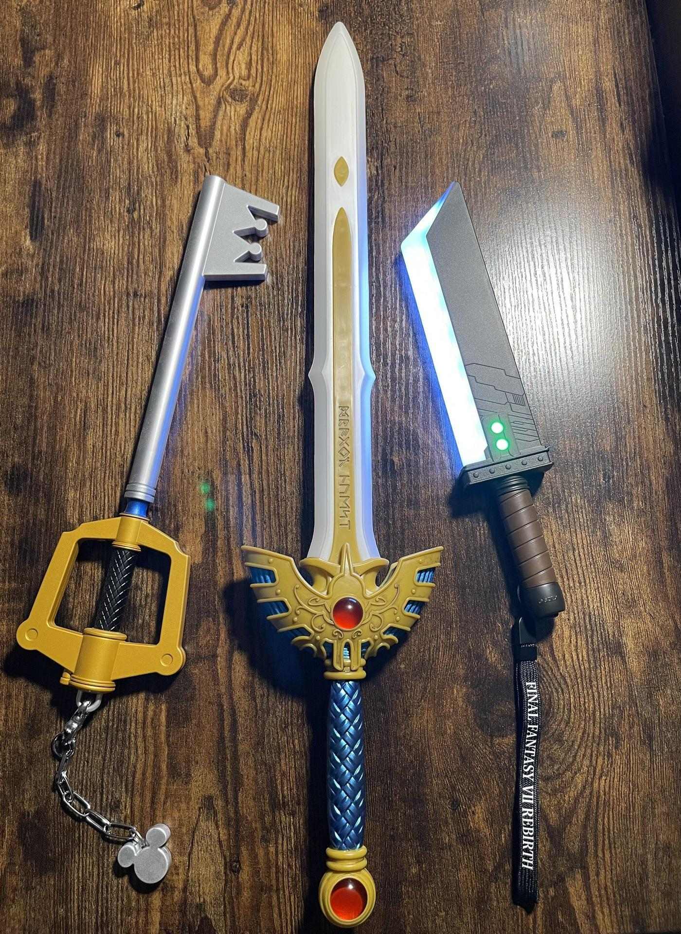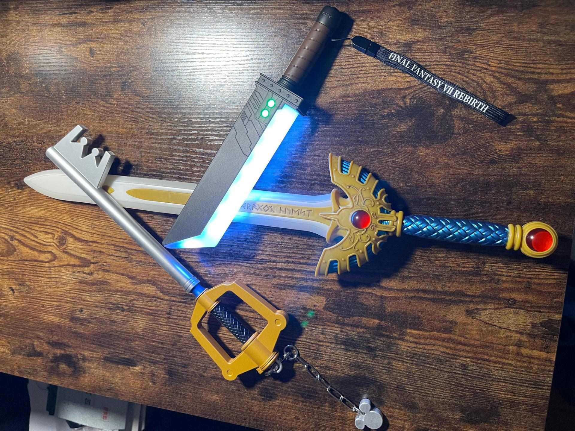 最後是出自「王國之心系列」的鑰刃,這把以鑰匙為設計概念的劍刃其外型相當獨特,在原作中每個人心中都有一把鑰刃,當主人的內心足夠堅強且能夠駕馭力量的時候就會現身。